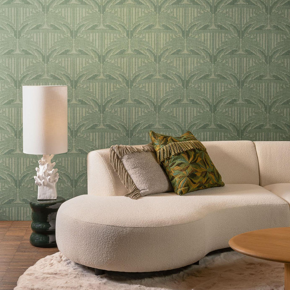 India boasts an extraordinary wealth of native flowers, which play a central role in daily life and traditions. This pattern draws inspiration from the flowering plants that colour the landscape in spring, as well as the floral garlands found in countless street stalls. Agra is printed on an elegant vinyl base that mimics the texture of handwoven linen.