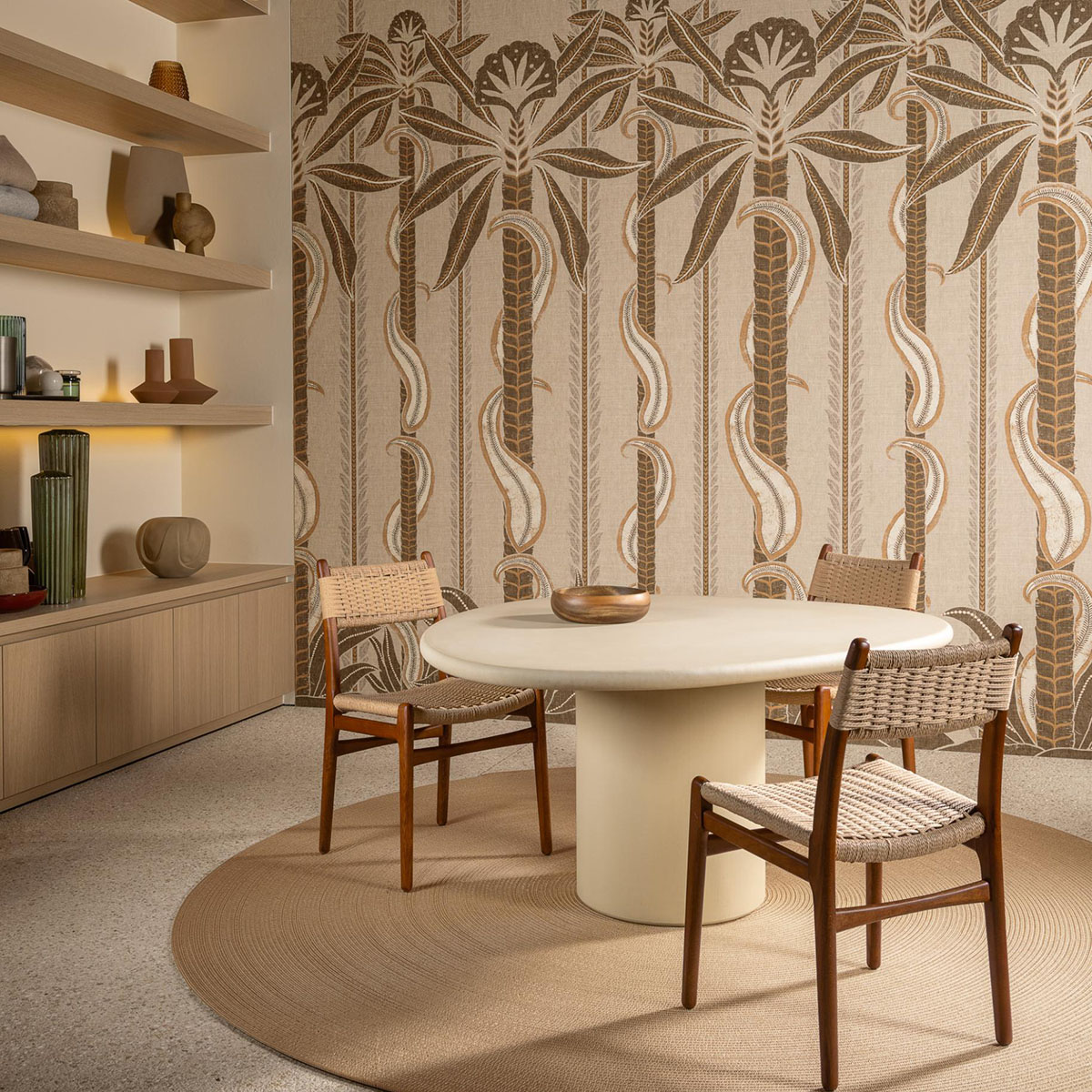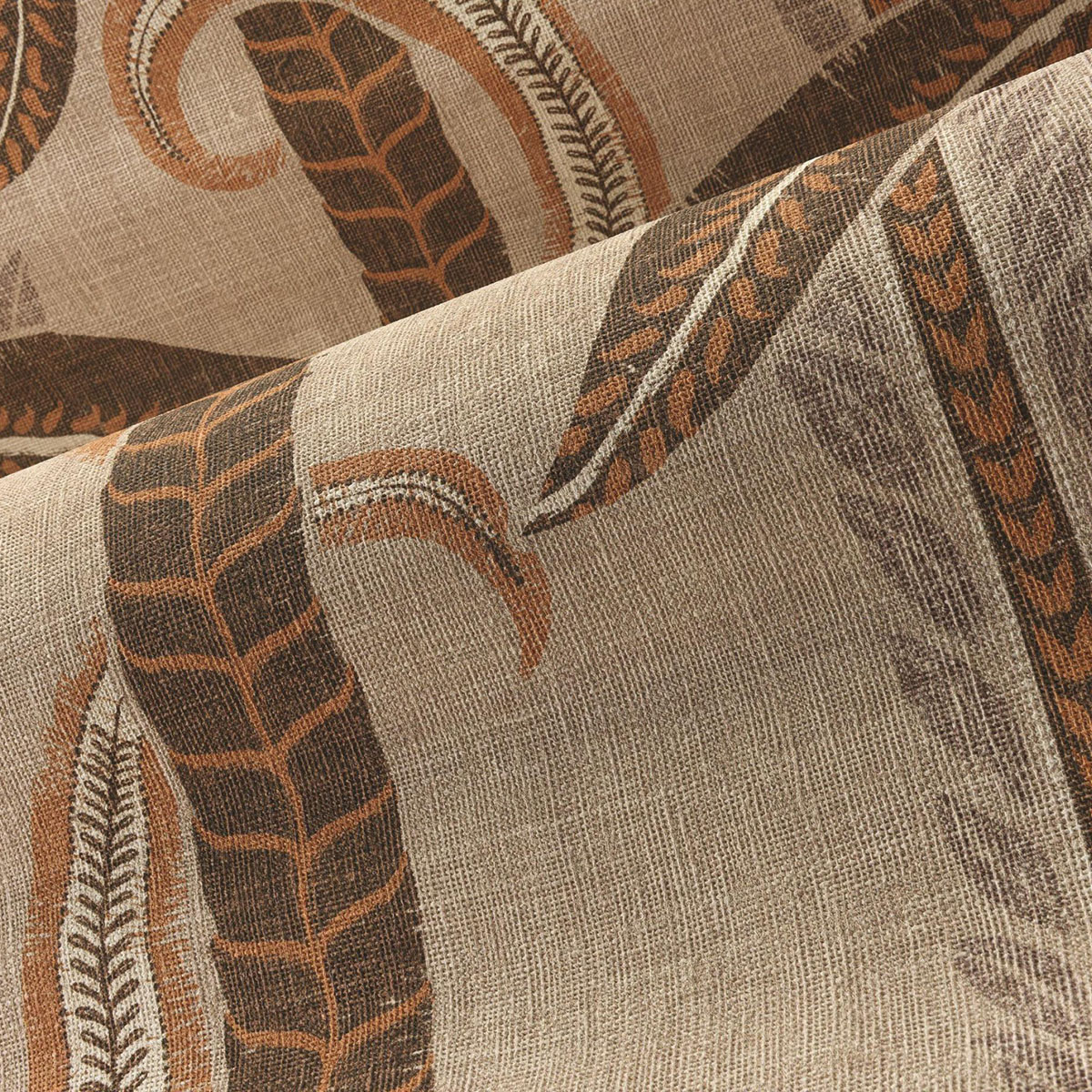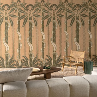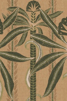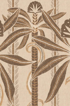 The swaying palms along the riverbanks of the Indian state of Kerala inspired this panoramic design. Its graceful lines stand out beautifully on the vinyl base, which has the relaxed, open-woven texture of linen.The panel is repeatable.