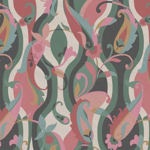 A paisley design with a contemporary character, reminiscent of decorative marquetry and inlaid artistry.
