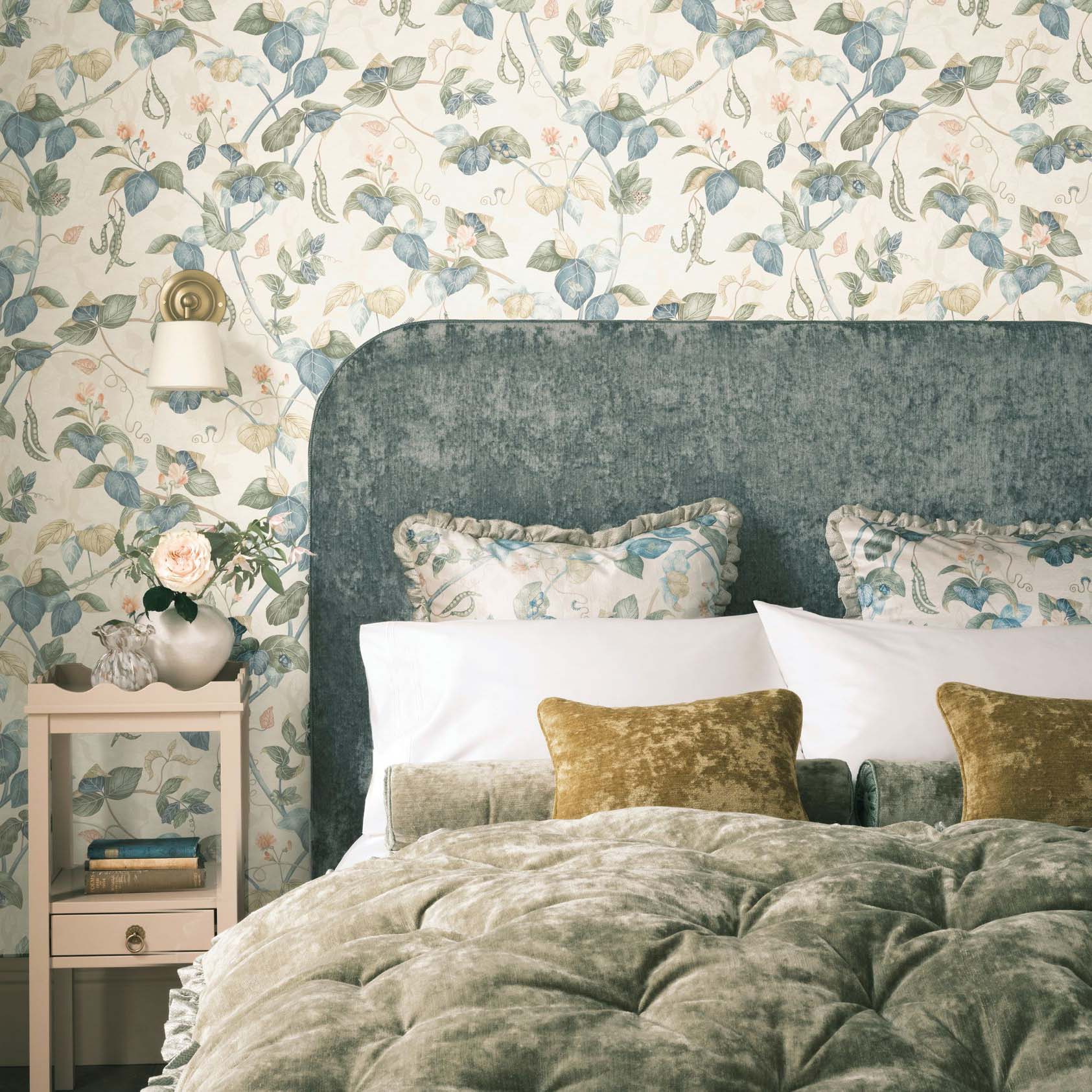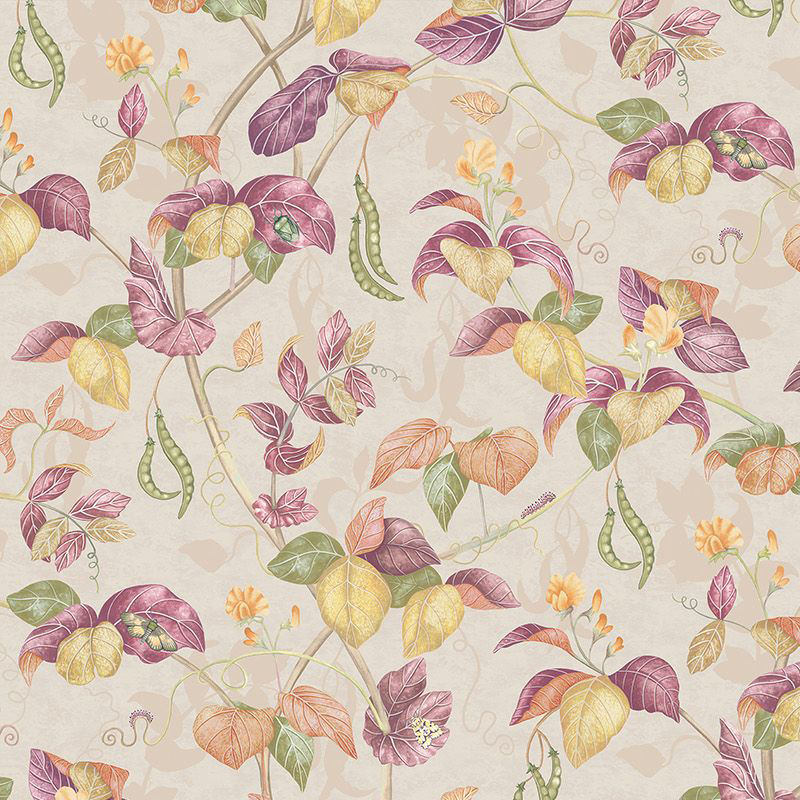 A delicate painterly trail of sweet peas in soft colourings.
