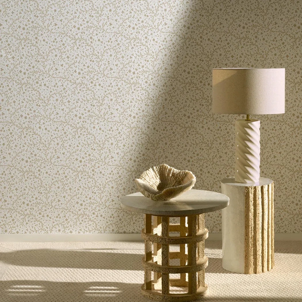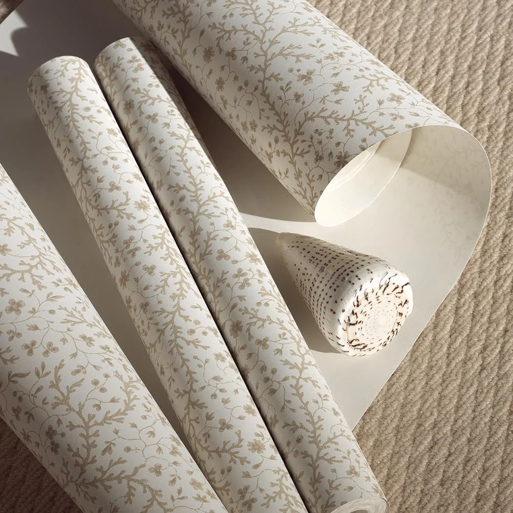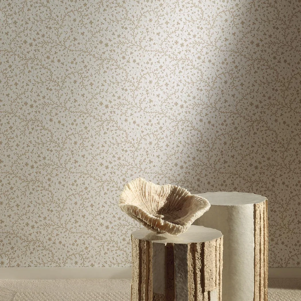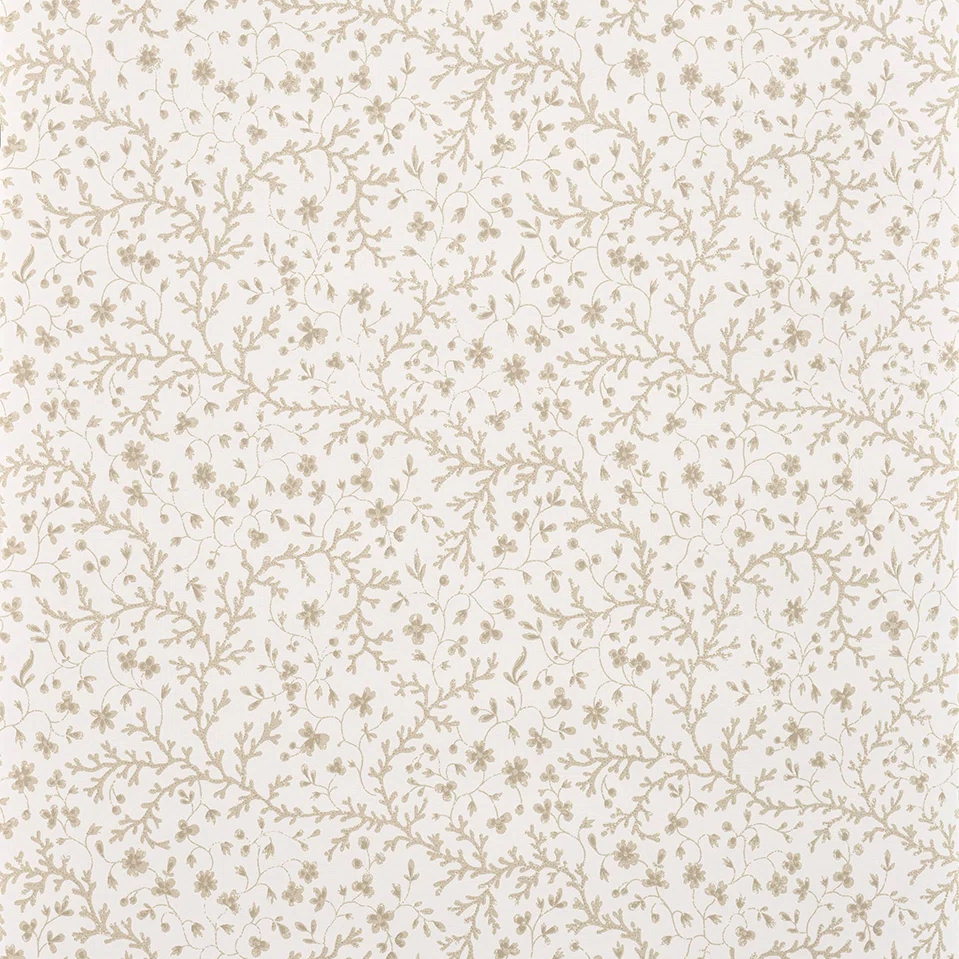 This delicate pattern printed in traditional printing technique with a hand-painted effect illustrates coral flowers from a collection of Provençal textile samples from the 19th century and preserved in the Pierre Frey archives.
