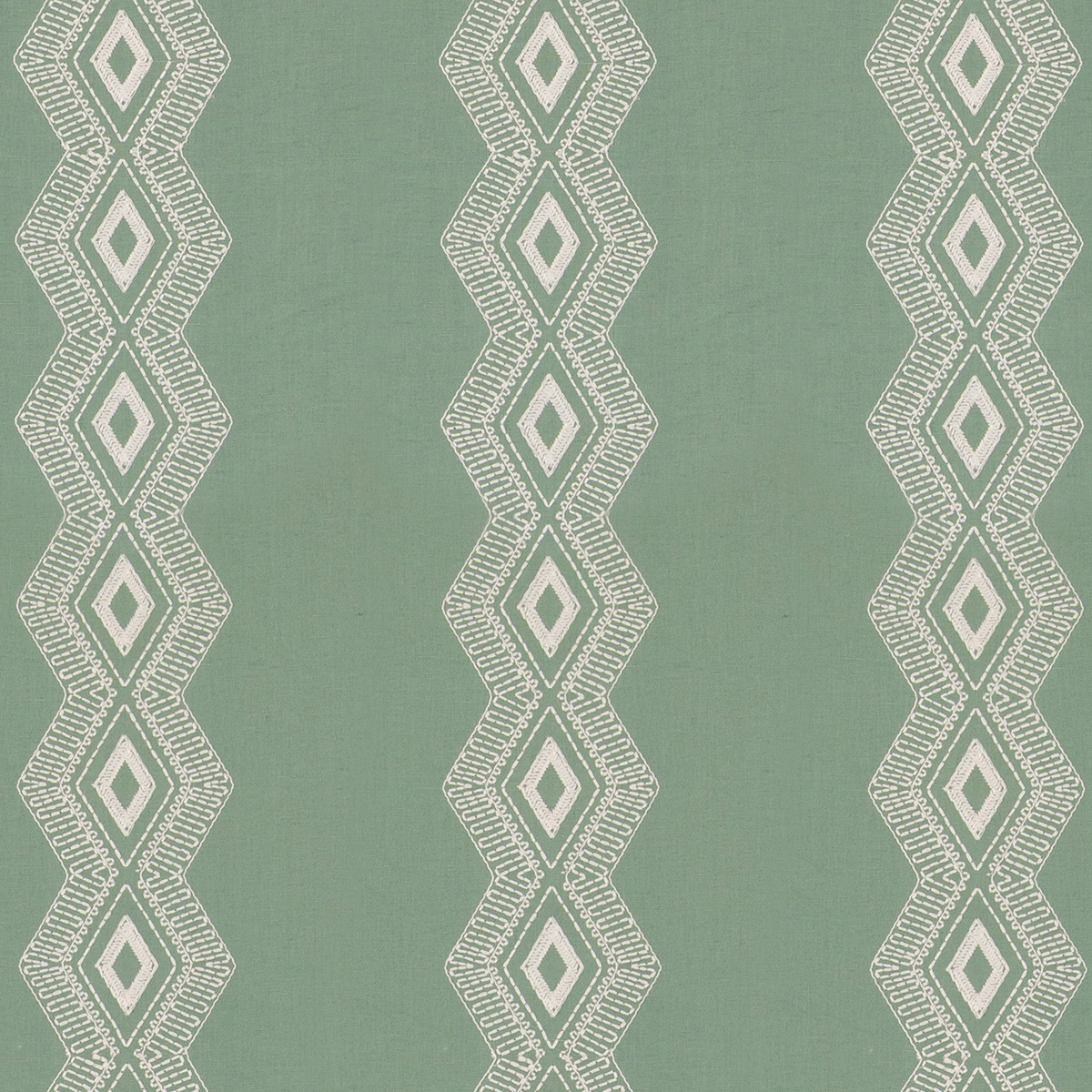 Diamond motifs form the basis of this chic decorative stripe on a solid coloured linen ground.