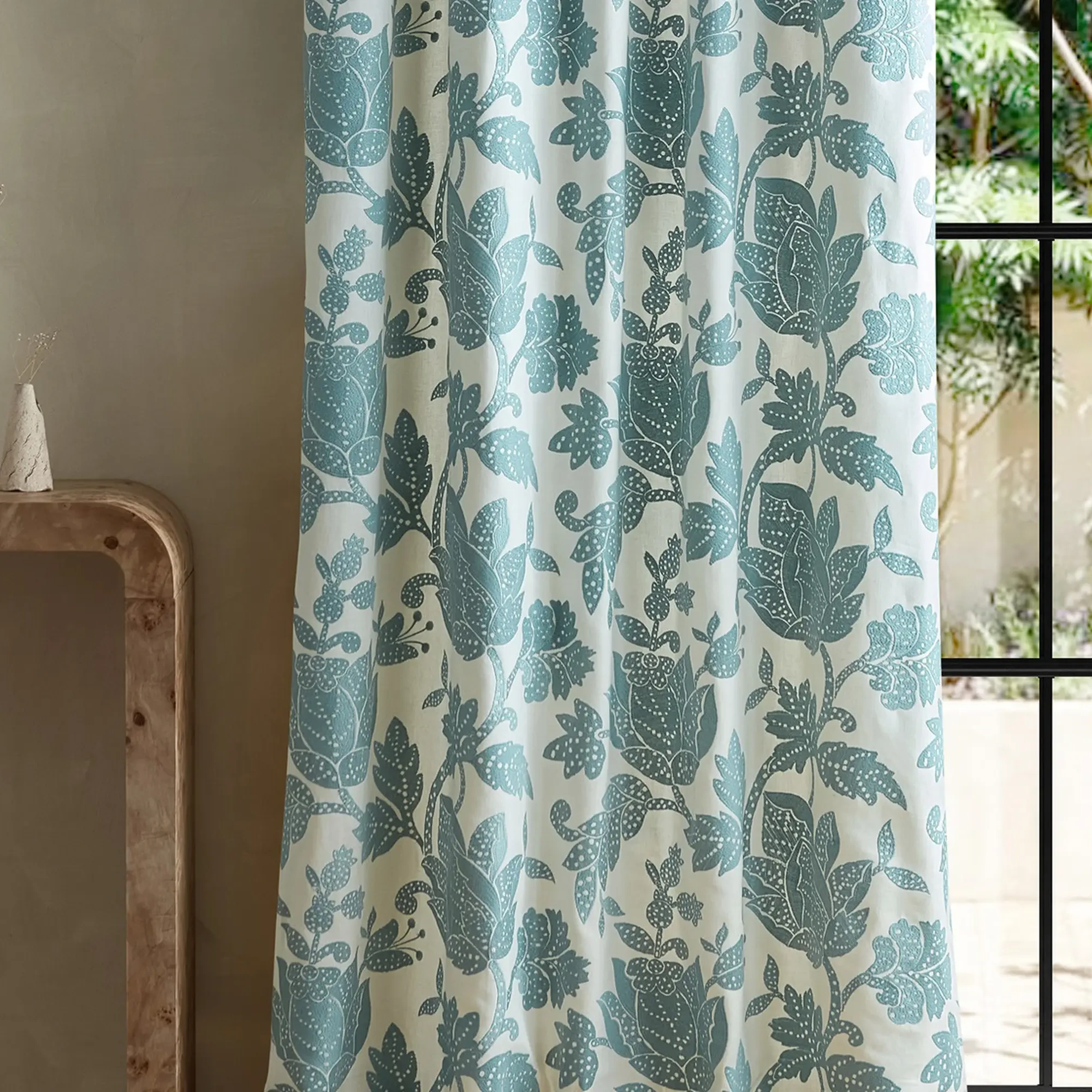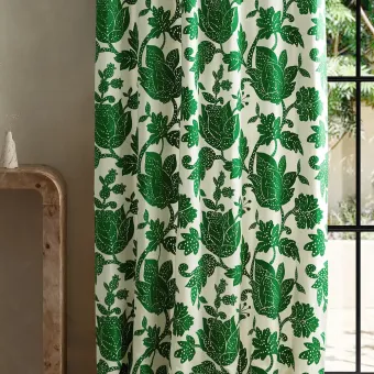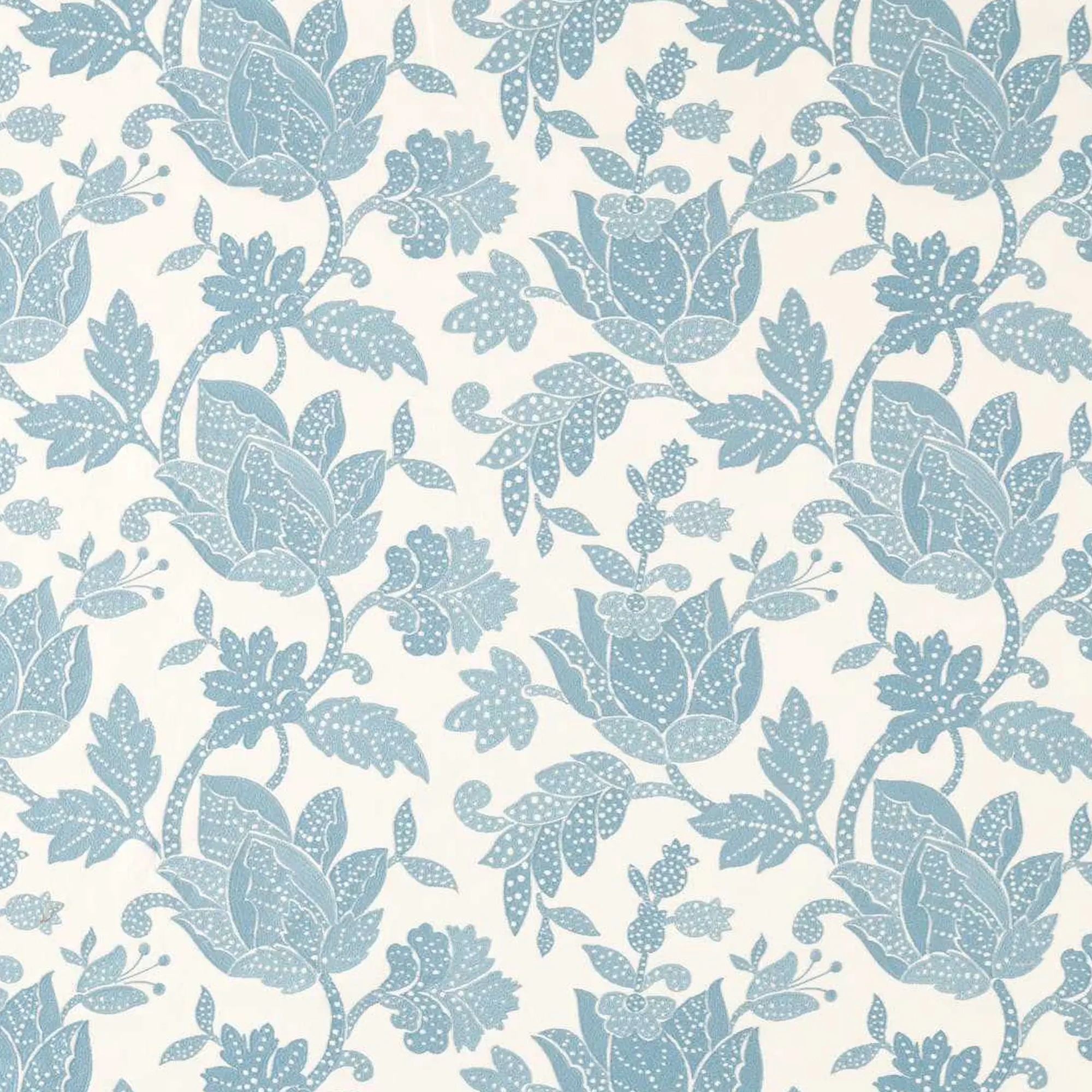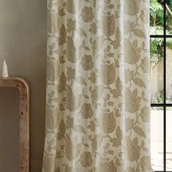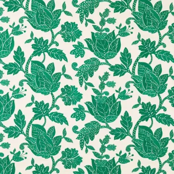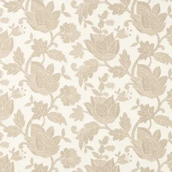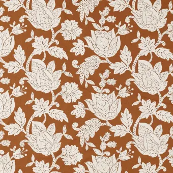 A classic, Jacobean-style embroidery, Zamora is modern and stylised in its design and colour, featuring large, leafy Jacobean heads embroidered onto a cotton-linen ground.