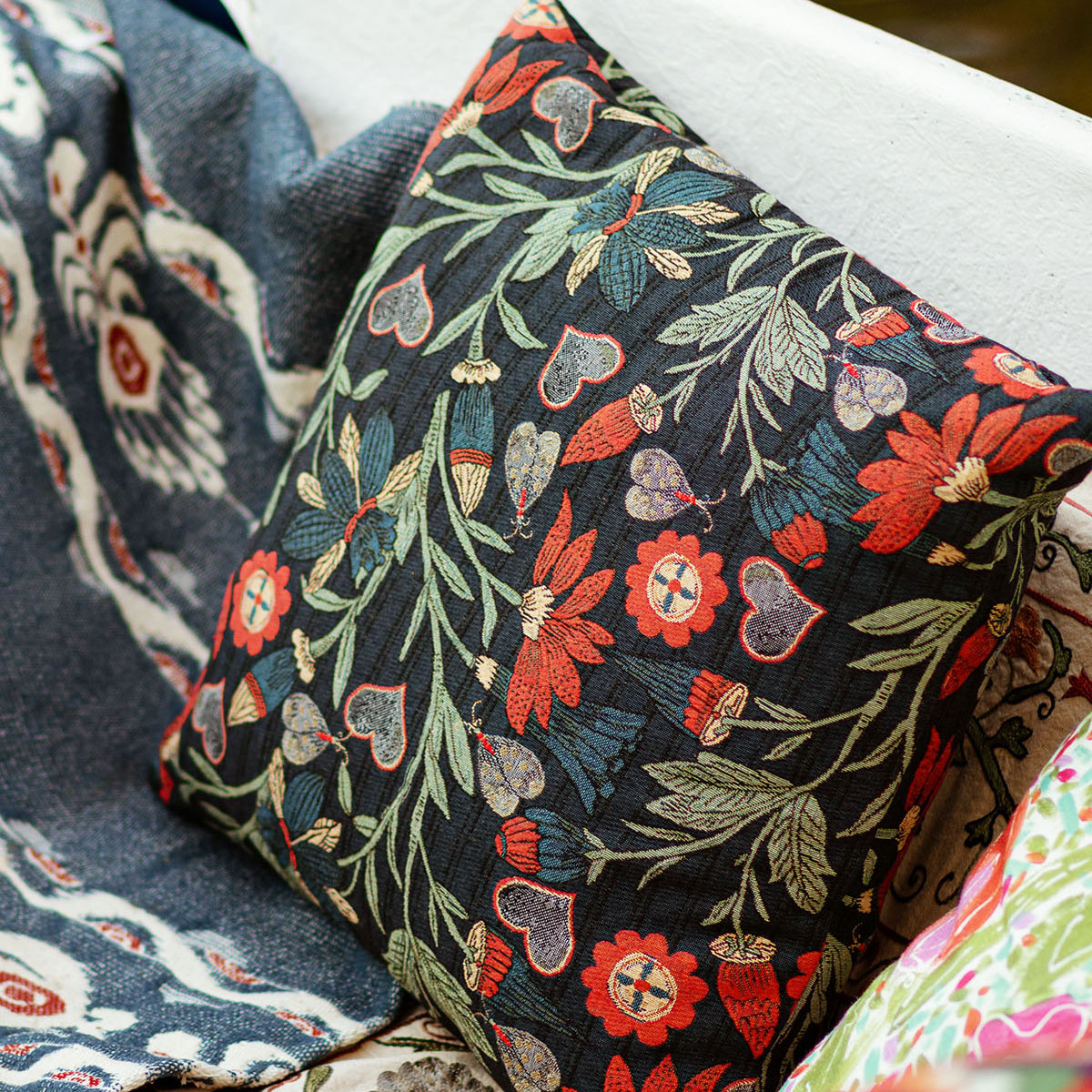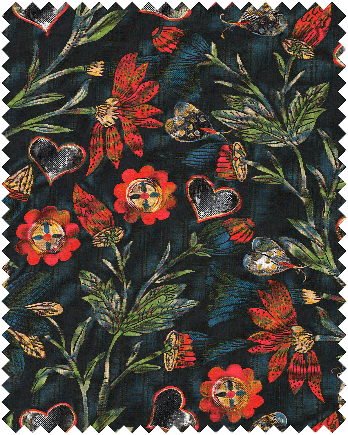 Inspired by the cultivated gardens that once surrounded Transylvanian manors, Inflorescence induces a sense of opulence to richly ordered ornamental fields. Nodding to historic floral embroidery and the decorative arts of the region, the design adopts a mural-like presence. Burnished wine tones and aged greens reflect the colours historically used in château interiors and ceremonial adornment, letting your senses wander through days gone by.