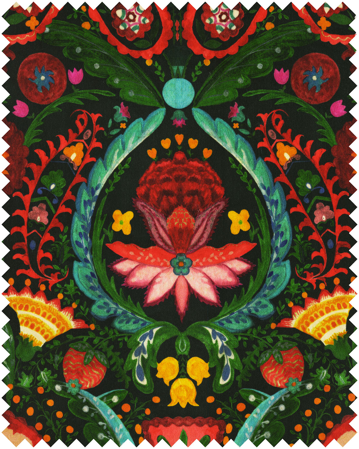 A world of florals unfolds in Rosa Mundi Anthracite Velvet, where abundant blooms rise against a deep, shadowed ground with ceremonial richness. The floral composition recalls historic textiles once reserved for interiors of status and symbolism, introducing a sense of theatrical elegance to the home. Printed on sumptuous velvet of generous weight, the fabric lends depth and drama to upholstery.