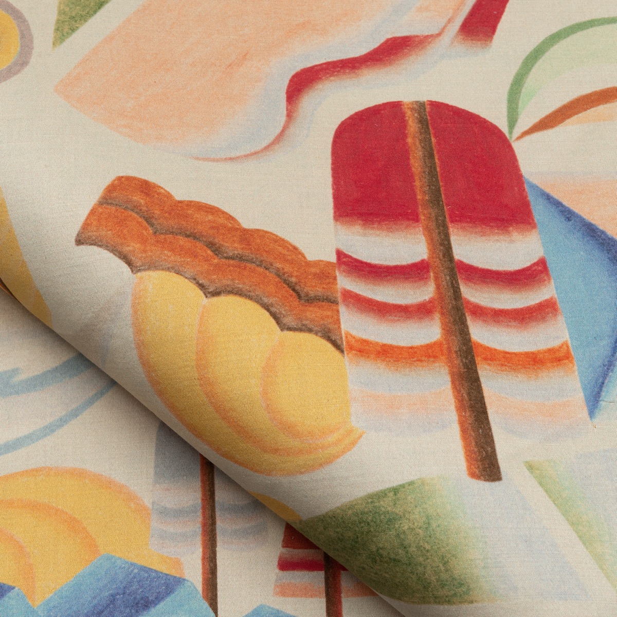 The deconstructed shapes and lively composition of Futurista echoes the renewell of Post-Modernism from the 60-70’s. This light and fluid drape of this quality comes to life with intense colours accentuated by the delicate satin shine.