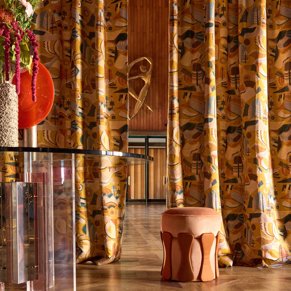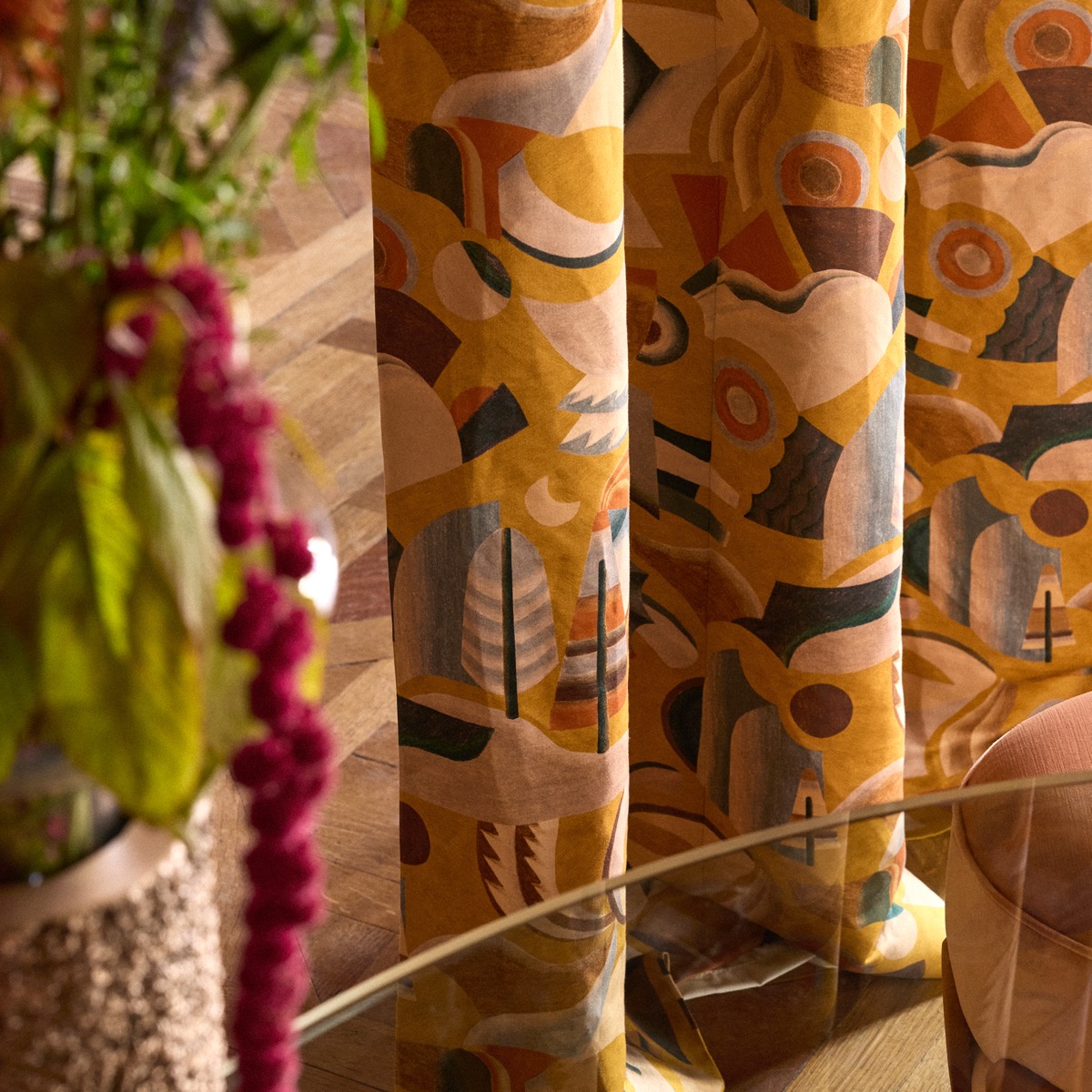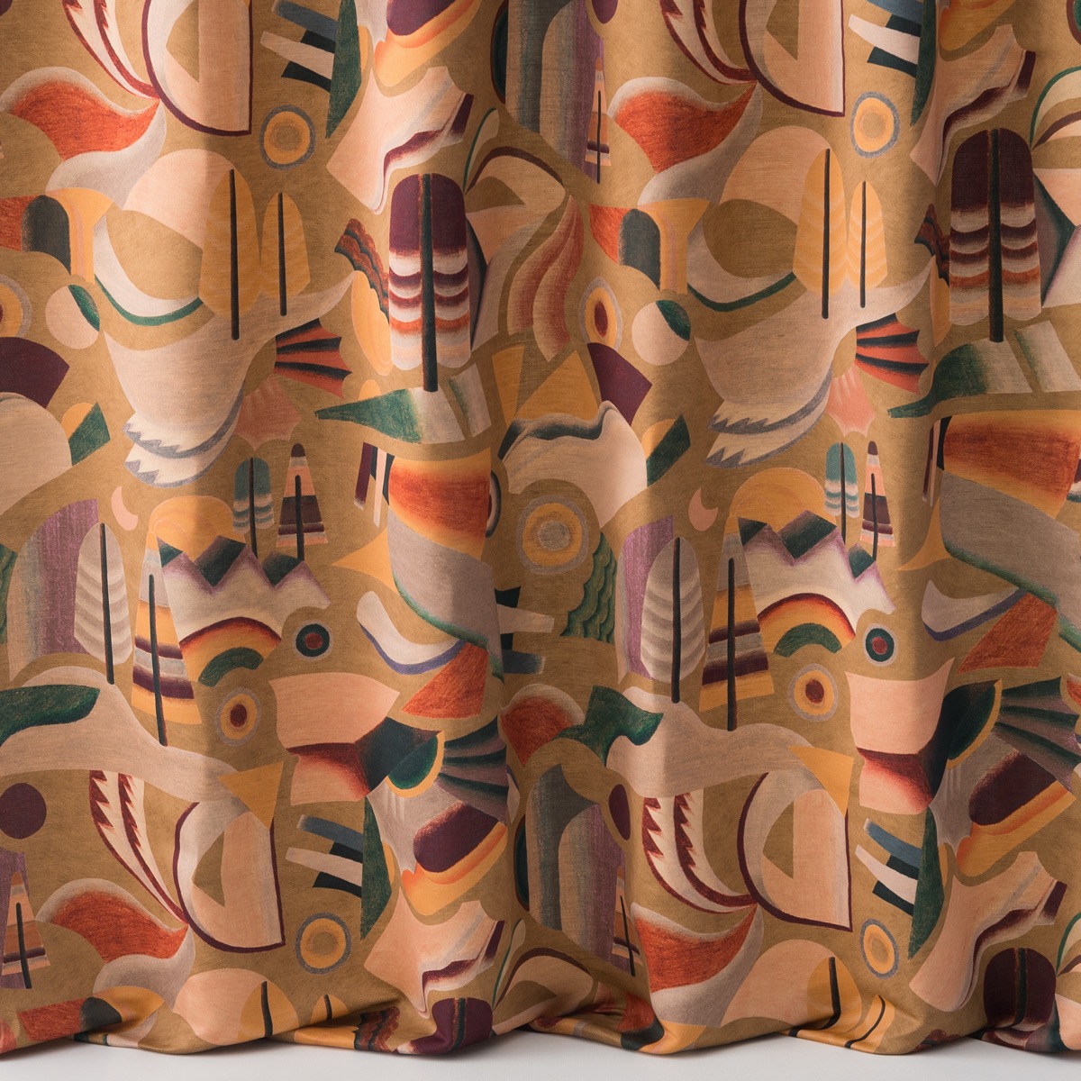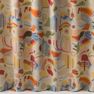 The deconstructed shapes and lively composition of Futurista echoes the renewell of Post-Modernism from the 60-70’s. This light and fluid drape of this quality comes to life with intense colours accentuated by the delicate satin shine.