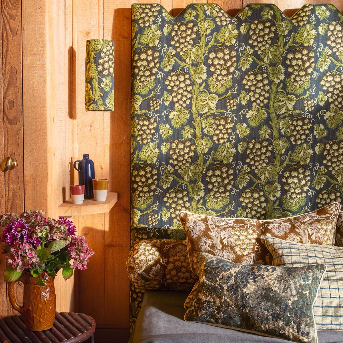 A high-performance indoor-outdoor fabric, Harcourt reinterprets a printed canvas from the second half of the 18th century preserved in the Maison's archives, in a dense weave with deep colours. Celebrating the bounty of nature in a Rousseauist spirit, its striped grape pattern has the charm of historical references and the sincerity of designs whose perfect balance stems from the imperfection of the hand. Woven in Pierre Frey's EPV-certified workshops in northern France, experts in Europe in light-resistant, water-repellent, washable and mould-resistant textiles.