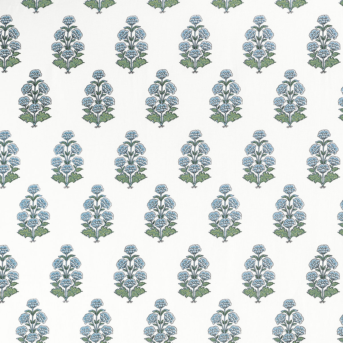 The open, small-scale design of Audrey is a great complement to the dense, allover patterns of the Boxwood collection. The Indienne block print design features little carnation bouquets in five colorways including blush, grey and beige.