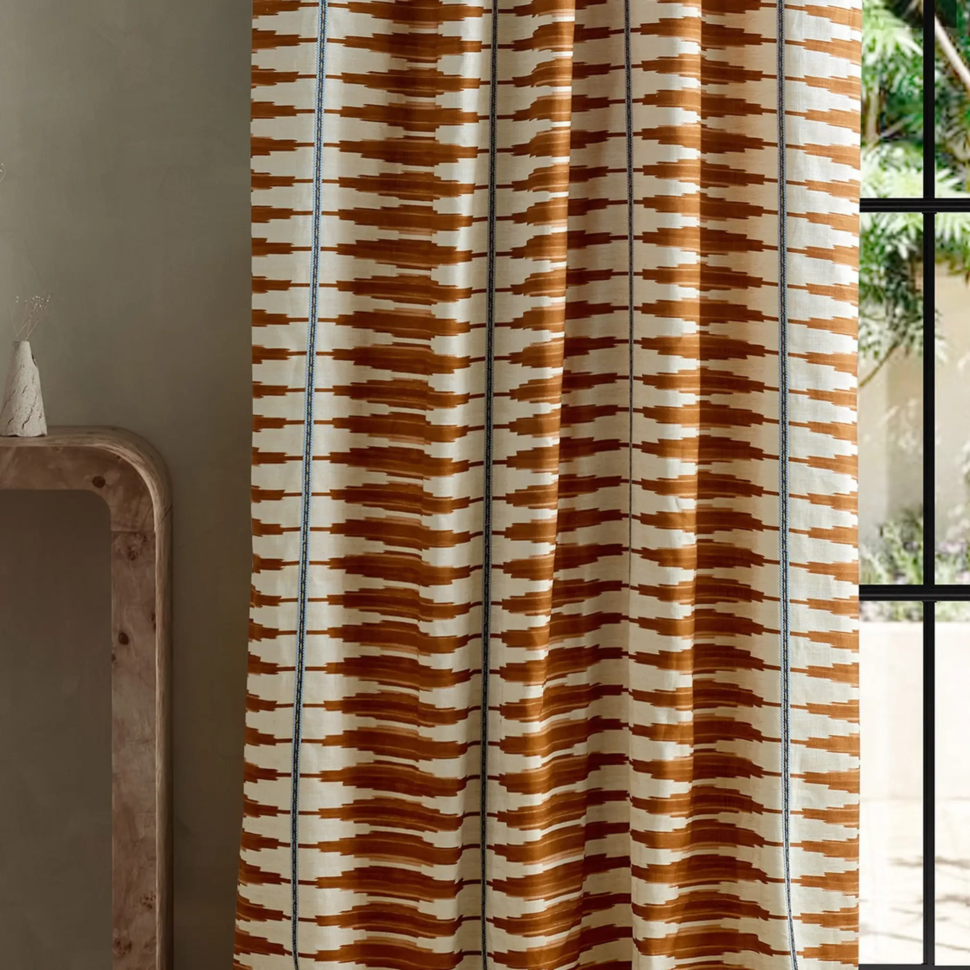 Cintilla is a mesmerising printed and embroidered stripe. This simple ikat is punctuated with an embroidered stitch stripe for texture and effect. Available in four colourways.