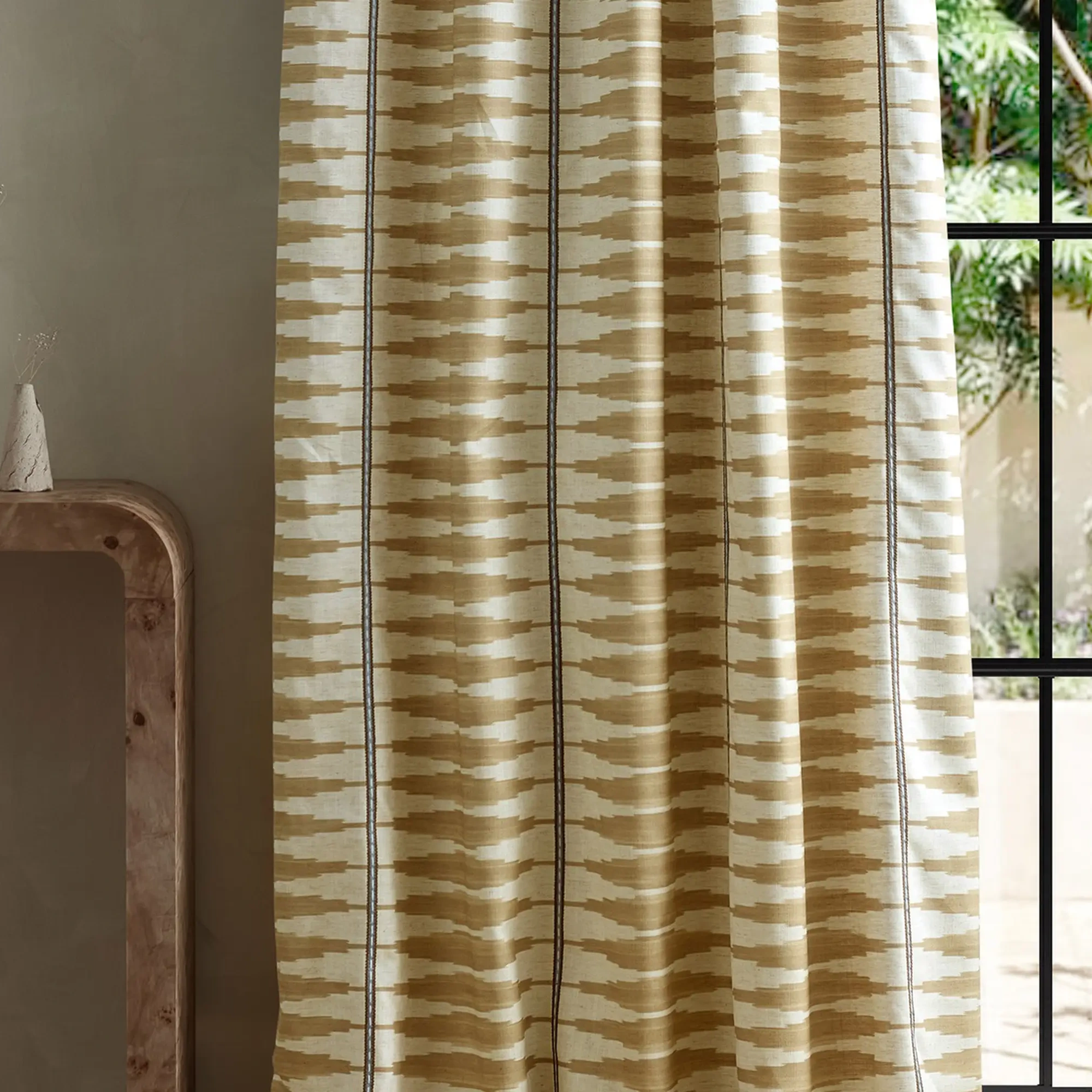 Cintilla is a mesmerising printed and embroidered stripe. This simple ikat is punctuated with an embroidered stitch stripe for texture and effect. Available in four colourways.