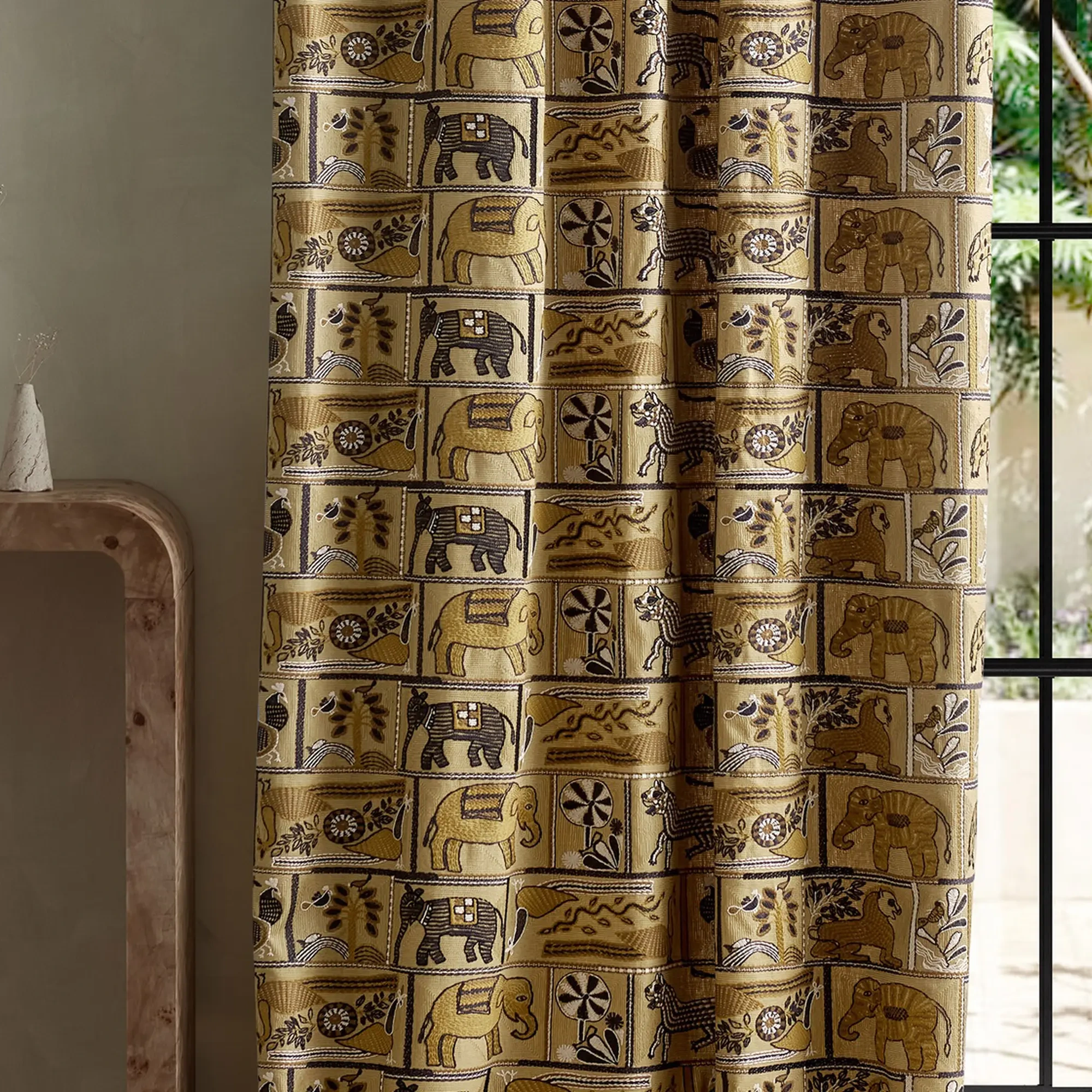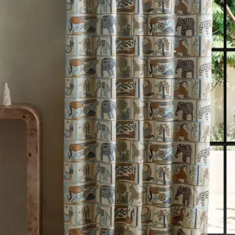 A beautiful embroidery, Kantha is a recognisable type of Indian embroidery, a blanket-stitch fabric with embroidery on top. This traditional design tells the story of elephants, tigers, fish, peacocks and other elegant birds.