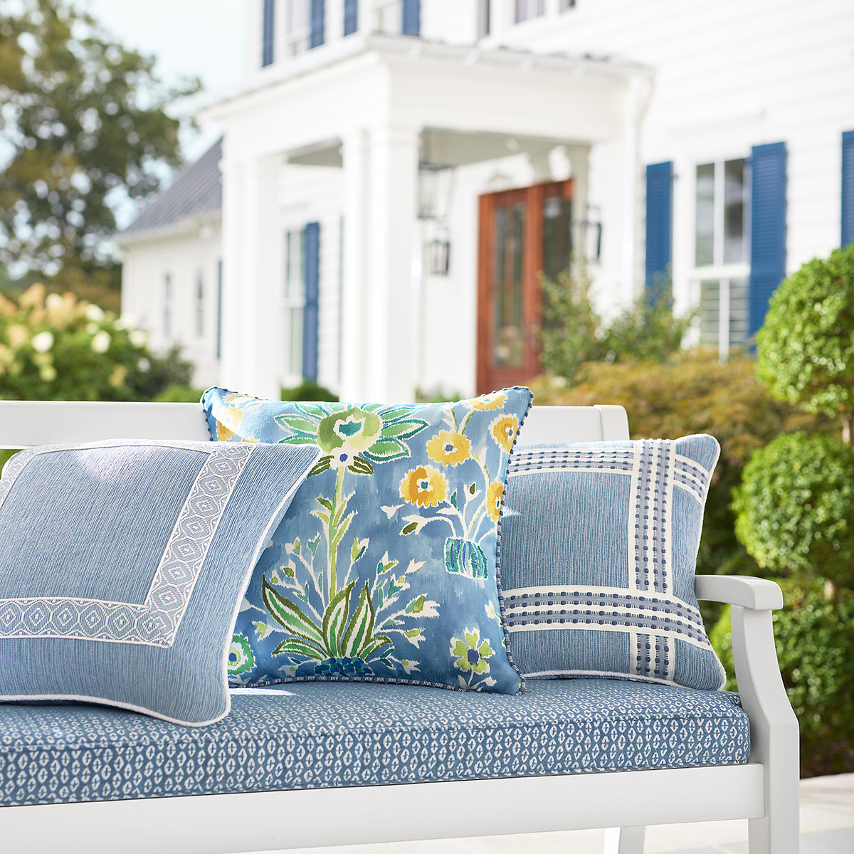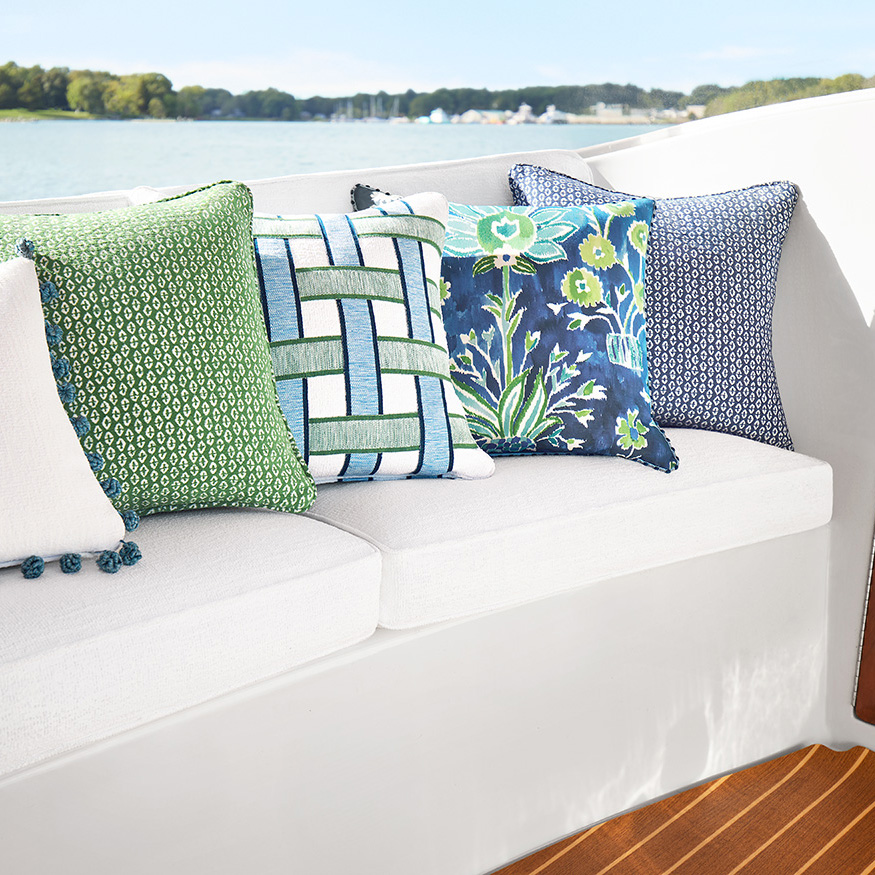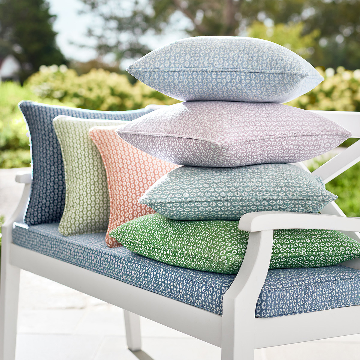Inspired by a block-printed silk kerchief, Perry is a petite pattern seemingly imprinted on a field of soft chenille. The small scale and diverse palette of this playful companion complement a variety of styles.