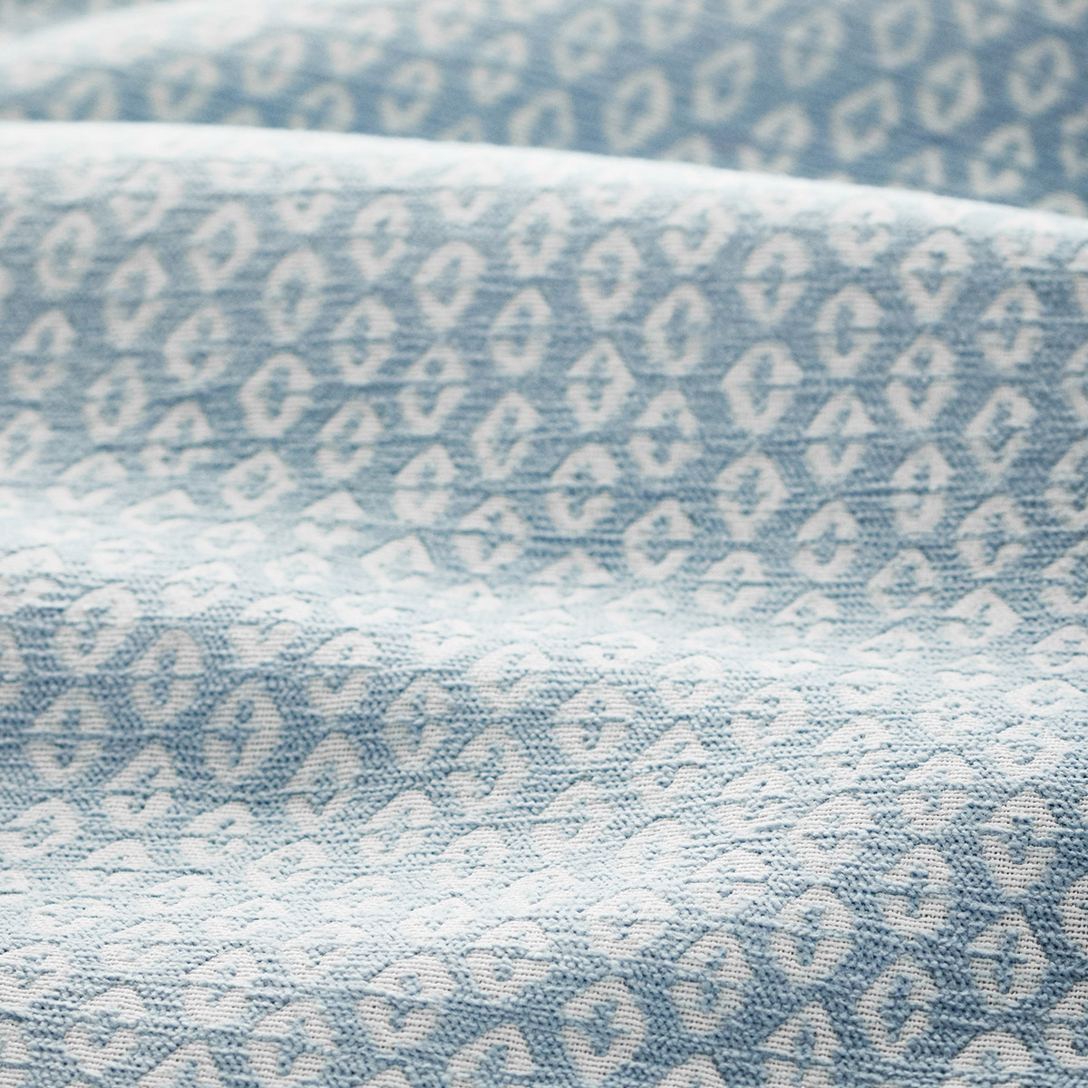 Inspired by a block-printed silk kerchief, Perry is a petite pattern seemingly imprinted on a field of soft chenille. The small scale and diverse palette of this playful companion complement a variety of styles.