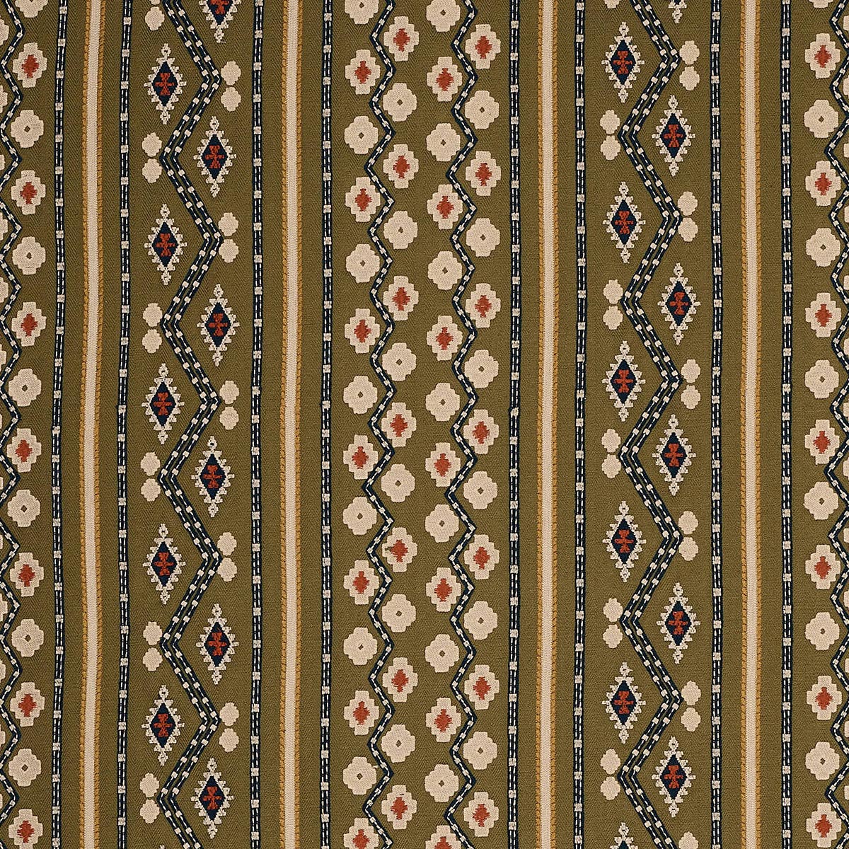 Bayton is an understated embroidered stripe with timeless appeal, perfect for a range of interiors. Inspired by antique Kilim patterns, it features bold, chunky stitchwork set against a richly textured, colour-woven herringbone ground.