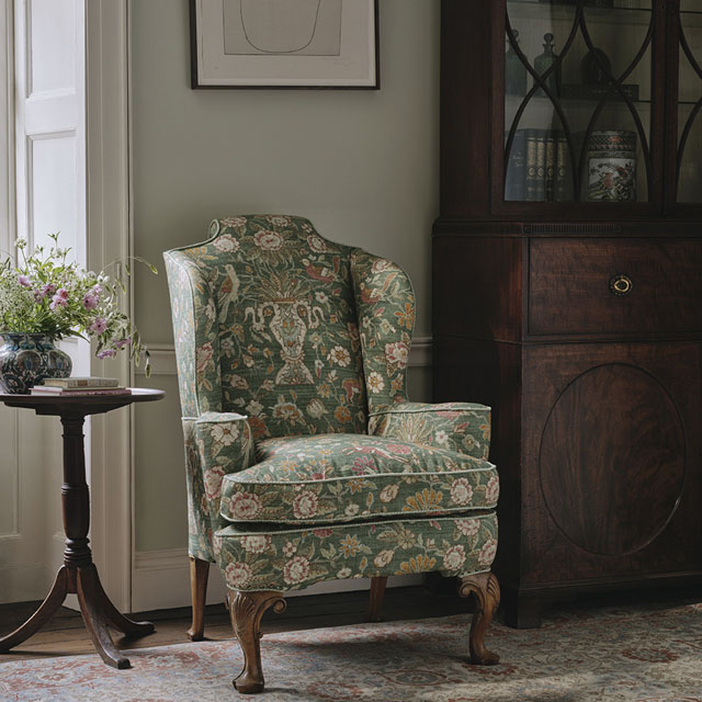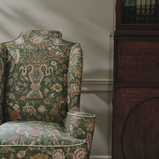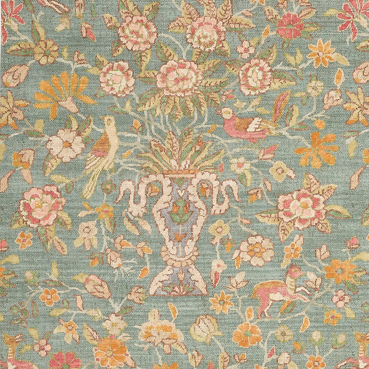 leury is a richly textured and distinctive print, inspired by a 20th-century carpet fragment in the Persian tradition. A joyful medley of stylised birds, animals, and flowers lends the design a whimsical, enchanting character. The subtle tonal variations of the original are masterfully reimagined through layered colour, evoking the depth and texture of antique carpet pile with remarkable skill.