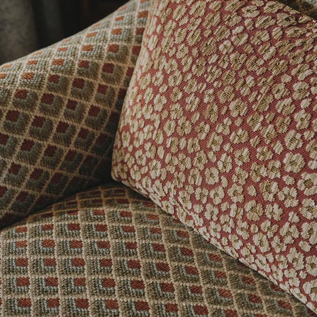 Inspired by the geometric motifs found in eighteenth-century needlepoint, Fulbrook combines vibrant multicolour with a robust, tactile weave. Its simple diamond pattern is brought to life through a skilful interplay of varied warp and weft yarns, creating a richly layered and visually engaging surface.