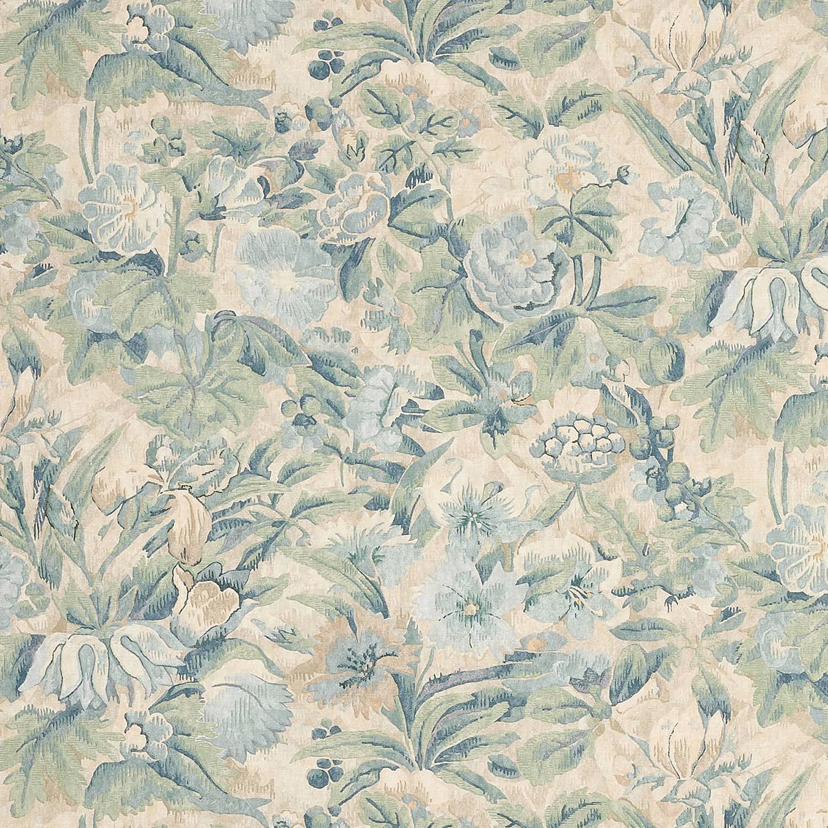 This beautifully atmospheric print offers a soft, tonal interpretation inspired by an antique block print document. Layered textures and tonal shading are skilfully rendered to capture the delicacy and depth of the original. Roses, irises, lilies, and fritillaria imperialis appear throughout, forming a rich tapestry of finely painted flora and fauna.