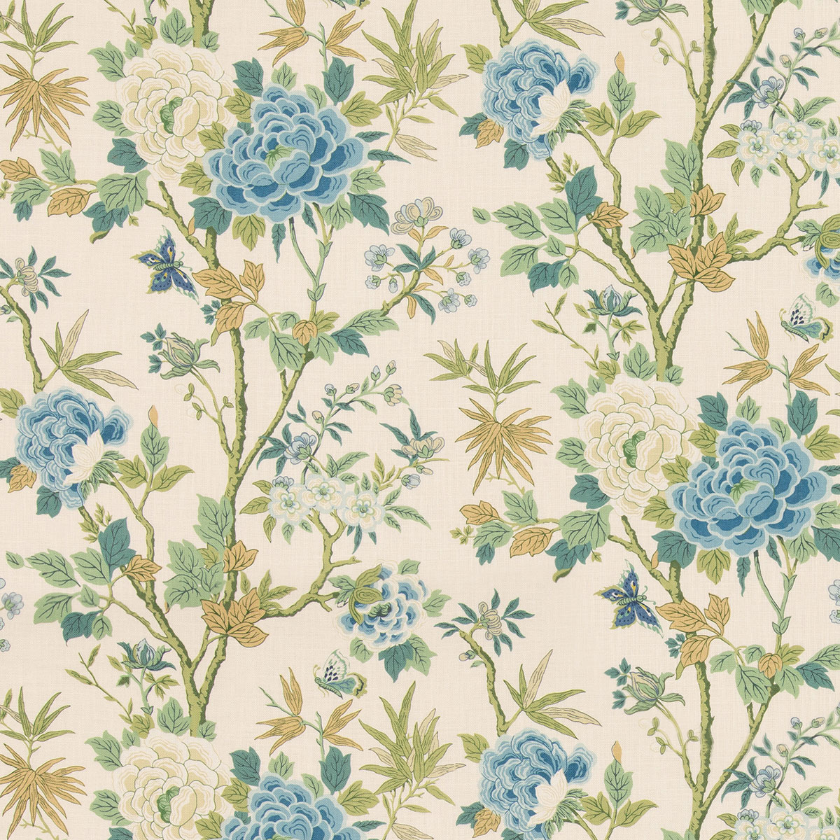 A GP & J Baker Original, Canton was first painted by the renowned textile designer William Turner in 1915. This lush design is based on a hand-painted Chinese wallpaper and features magnificent peony trees in full bloom with delicate butterflies.