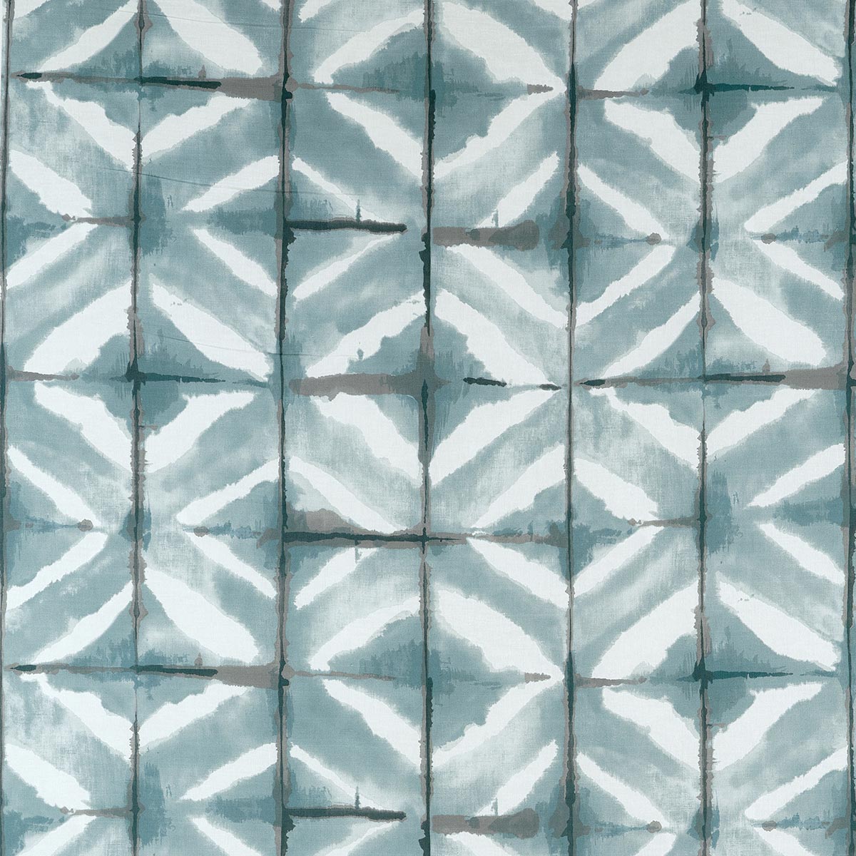 Inspired by Japanese Shibori tie-dye, Water Blocks evokes an organic symmetry in its layout of watery squares. The wallcovering is printed on sisal with a shimmering metallic ground for added elegance, and its coordinating fabric is made from a linen cotton blend.