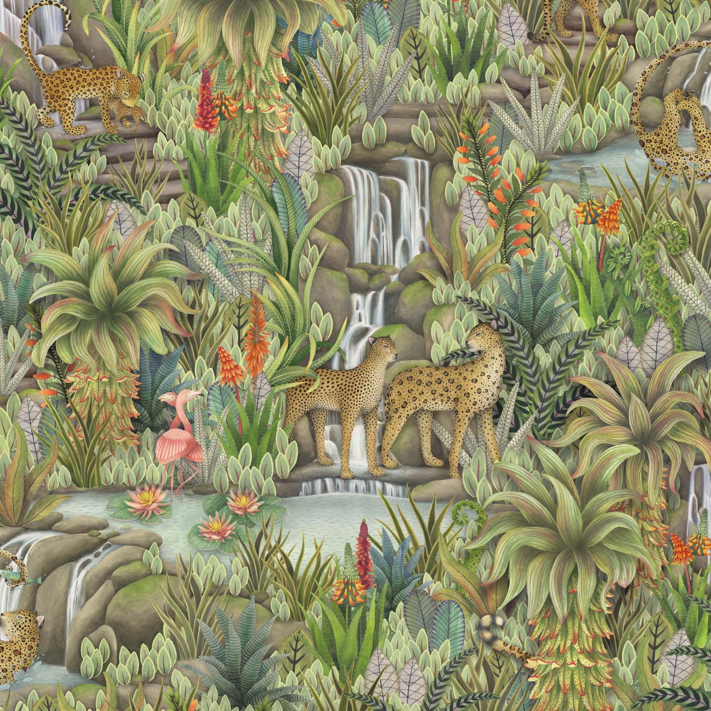 This lush display contains numerous animals, including big cats, flamingos, and fish, with more unfolding the further you look.