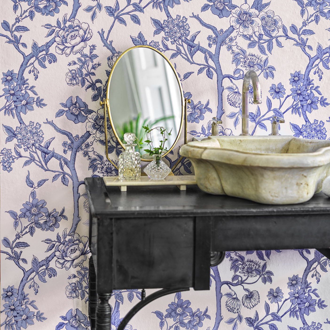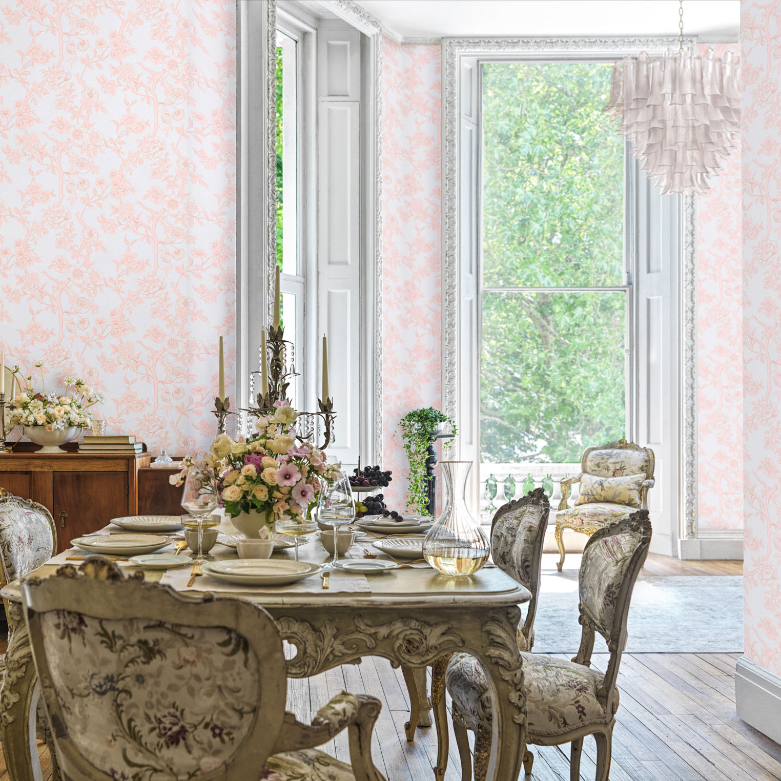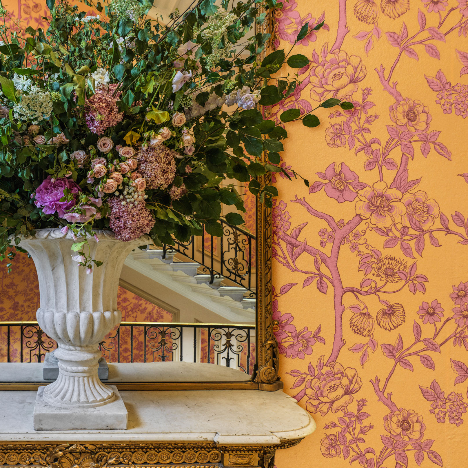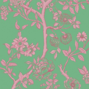 Paradise Tree's sprawling boughs create a rich and lush canopy of flora and foliage. The design is offered in soft pastels of Dove Grey, Pastel Blue and Soft Pink, Buttercup Yellow and Cream, and Cornflower Blue and Soft White, as well as the mood-boosting, vibrant brights of Tangerine and Hibiscus and Emerald and Petal Pink providing a variety of interior options with the Emerald ground colour harking back to 19th century greens that remained ever-popular in High Society homes.