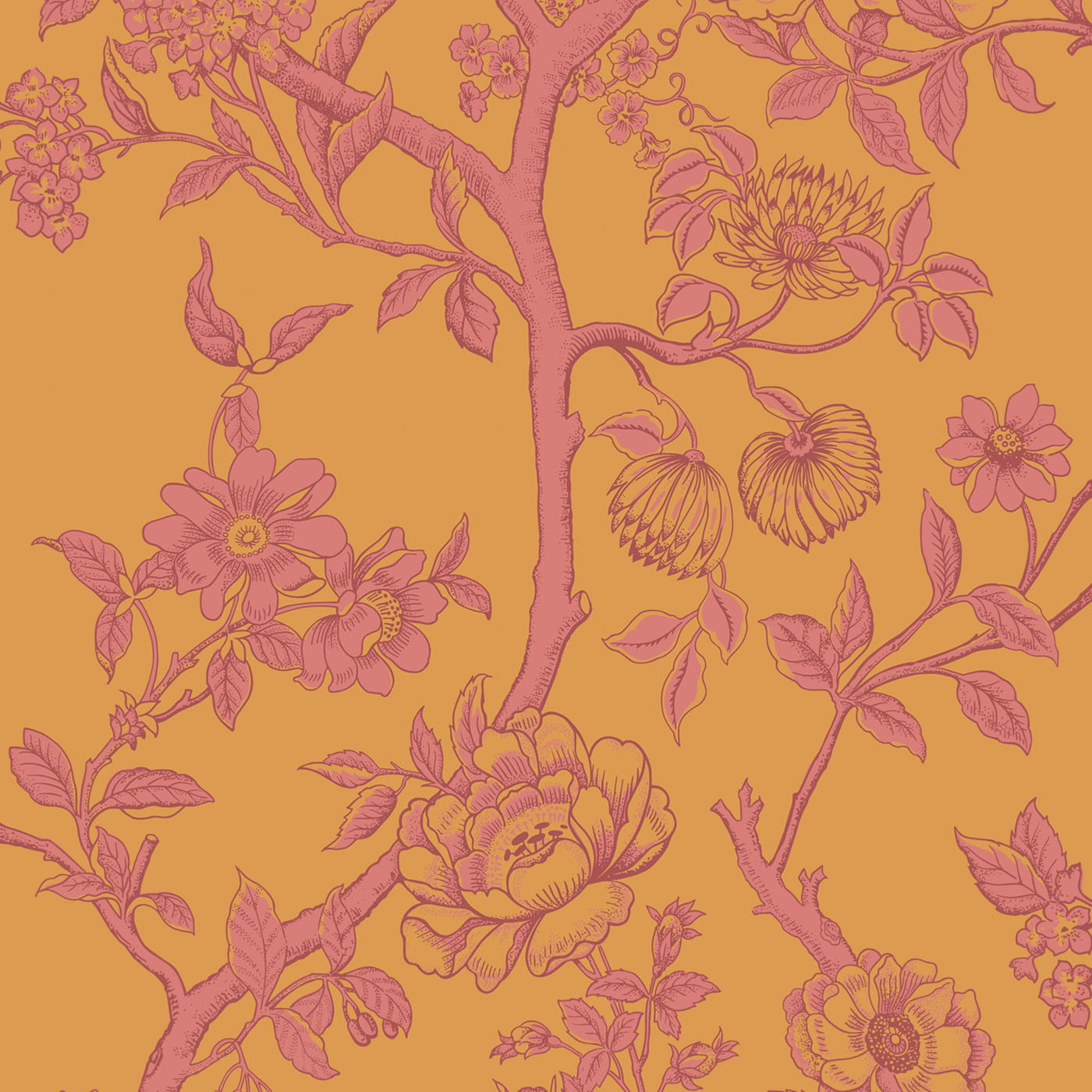 Paradise Tree's sprawling boughs create a rich and lush canopy of flora and foliage. The design is offered in soft pastels of Dove Grey, Pastel Blue and Soft Pink, Buttercup Yellow and Cream, and Cornflower Blue and Soft White, as well as the mood-boosting, vibrant brights of Tangerine and Hibiscus and Emerald and Petal Pink providing a variety of interior options with the Emerald ground colour harking back to 19th century greens that remained ever-popular in High Society homes.