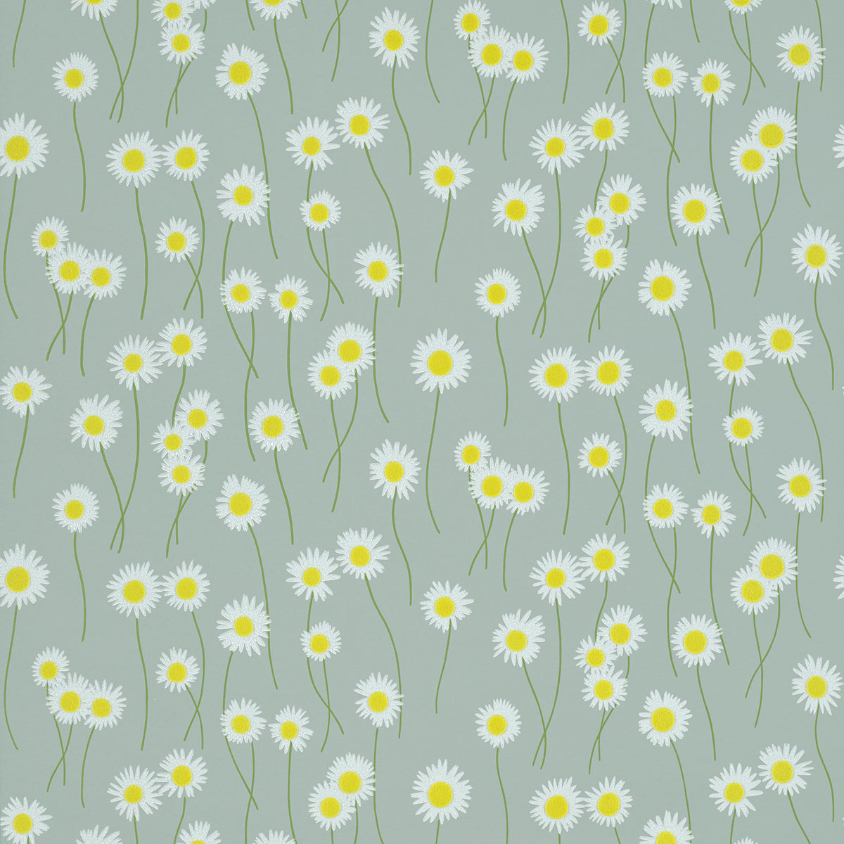The unrivalled simplicity of the daisy flower has inspired surface design for centuries; from decorative embroidery to ceramics, and fashion items to wallpaper. Taking its title from an informal name for the ox-eye daisy, which is known for reflecting moonlight alongside country roads and paths at night, this design features bright yellow flocked centres on daisies with interlocking stems; a much simpler interpretation than the late-19th-century wallpaper, found at Oxburgh Hall, that inspired it.