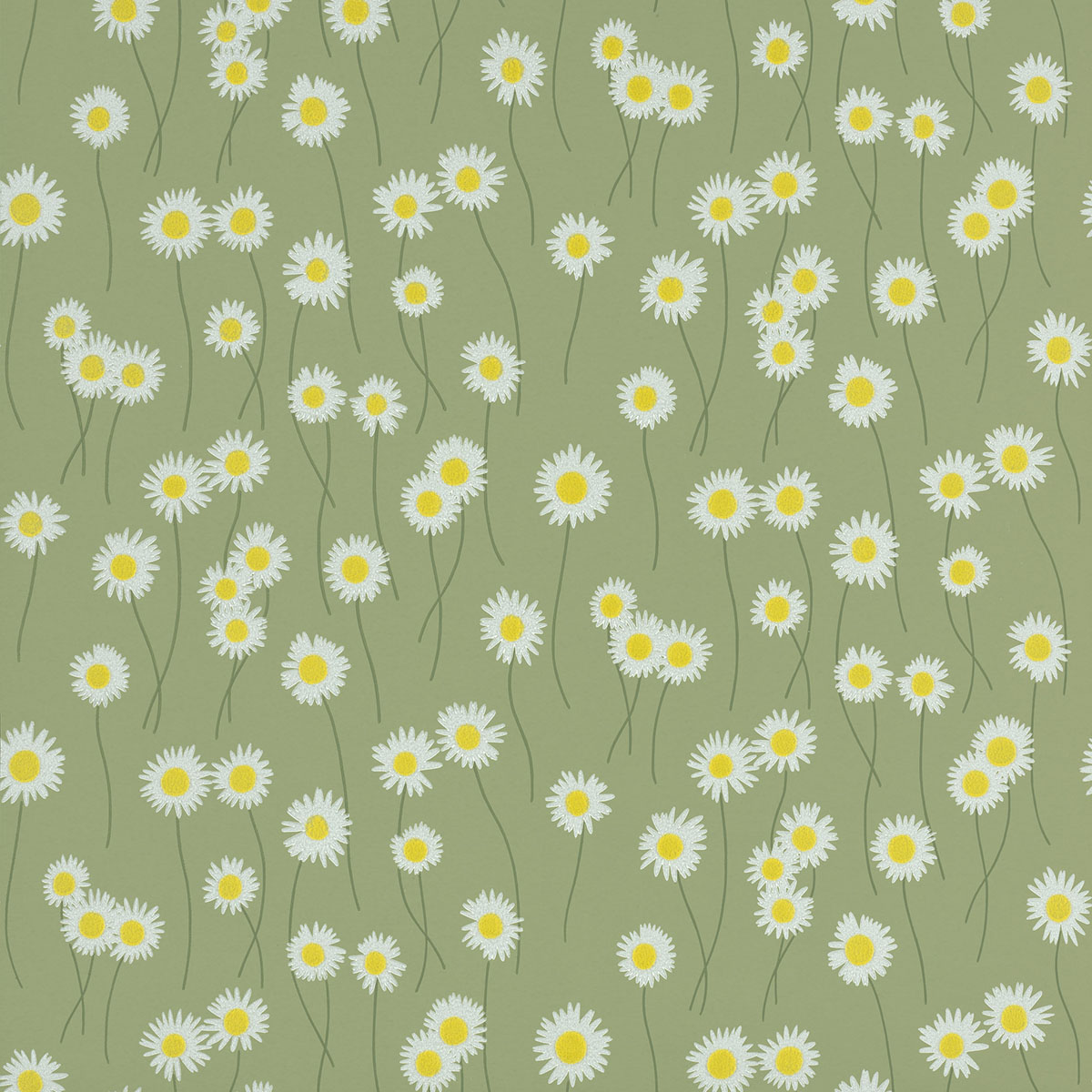 The unrivalled simplicity of the daisy flower has inspired surface design for centuries; from decorative embroidery to ceramics, and fashion items to wallpaper. Taking its title from an informal name for the ox-eye daisy, which is known for reflecting moonlight alongside country roads and paths at night, this design features bright yellow flocked centres on daisies with interlocking stems; a much simpler interpretation than the late-19th-century wallpaper, found at Oxburgh Hall, that inspired it.