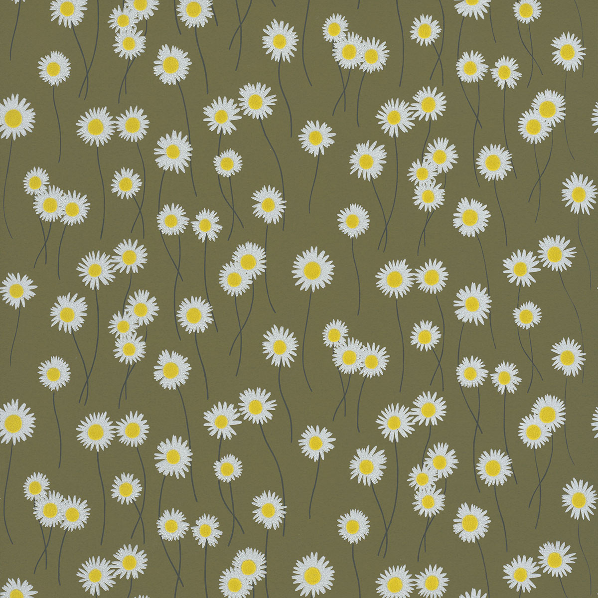The unrivalled simplicity of the daisy flower has inspired surface design for centuries; from decorative embroidery to ceramics, and fashion items to wallpaper. Taking its title from an informal name for the ox-eye daisy, which is known for reflecting moonlight alongside country roads and paths at night, this design features bright yellow flocked centres on daisies with interlocking stems; a much simpler interpretation than the late-19th-century wallpaper, found at Oxburgh Hall, that inspired it.
