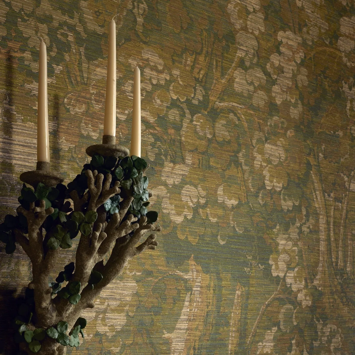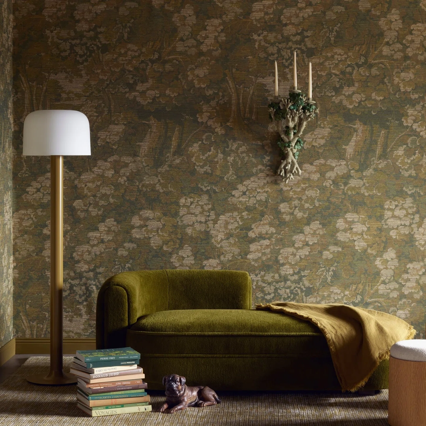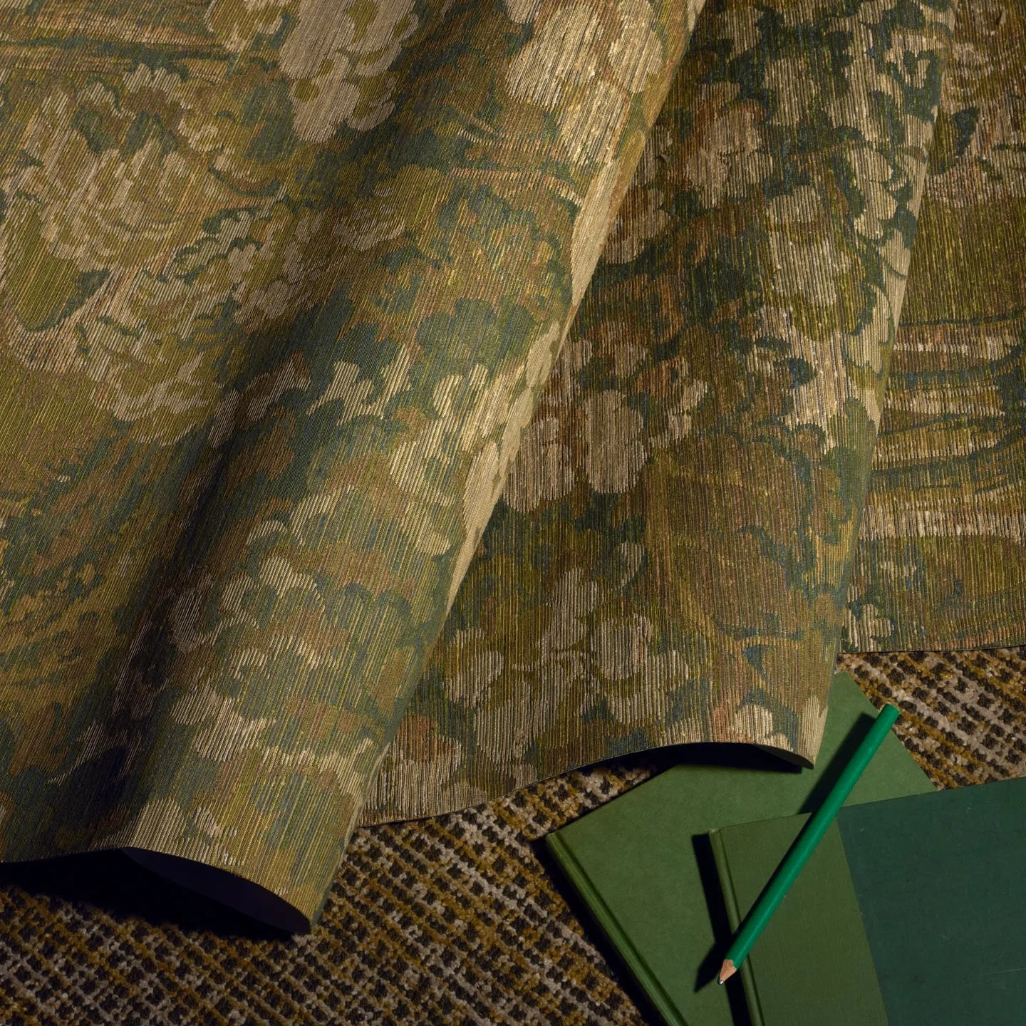Pierre Frey celebrates greenery and all that it reveals about our textile heritage. Striking in its large scale and textured weft threads, Alençon exudes the character and depth of truly grand designs. This exceptional wall covering, crafted in jacquard textile laminated to a non-woven backing, masterfully evokes the tapestries of the 17th and 18th centuries.