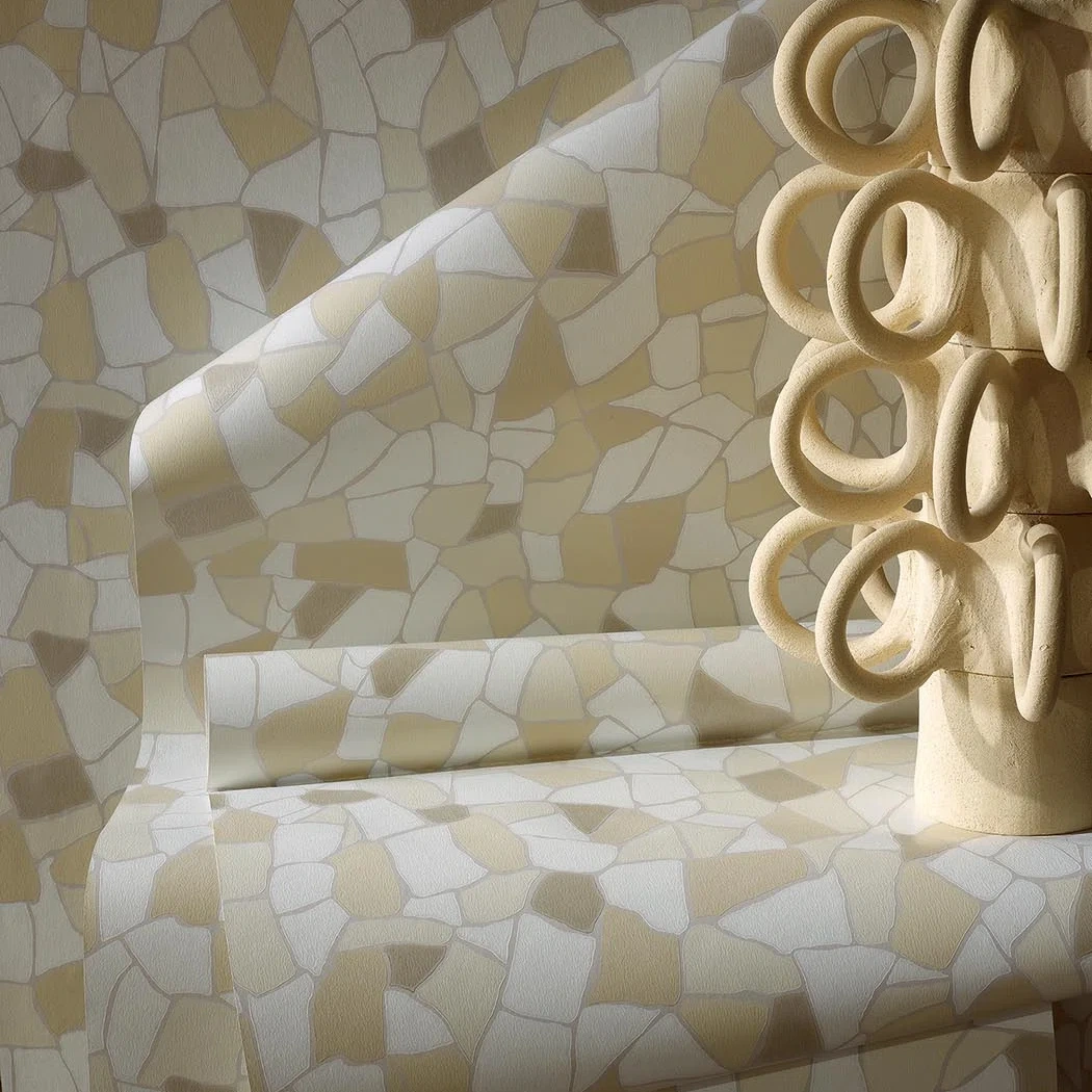 Biot evokes the facets of glass and enamel. Traditional cylinder printing with a "hand-painted" effect and the interplay of matte and metallic inks give the design volume, light and brilliance.