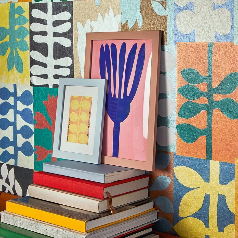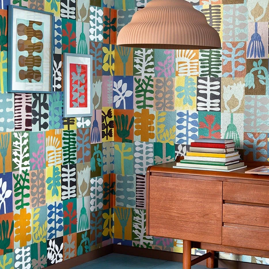 Artist Véronique Villaret's design is based on an assembly of cut-out drawings inspired by plants. Colored and printed on a pearlescent base, this cheerful wallpaper combines character and refinement.