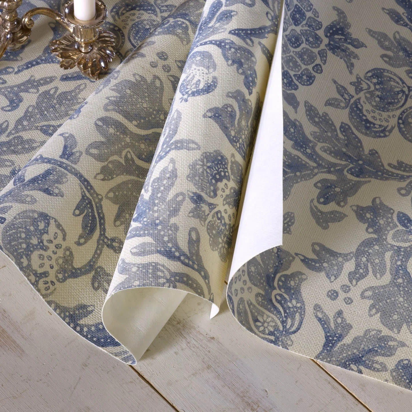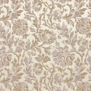 Magnificent jute print, featuring a charming pomegranate design in an antique style. Its matte, handcrafted appearance, combined with its luminous tones, gives this beautiful wallpaper a timeless character.