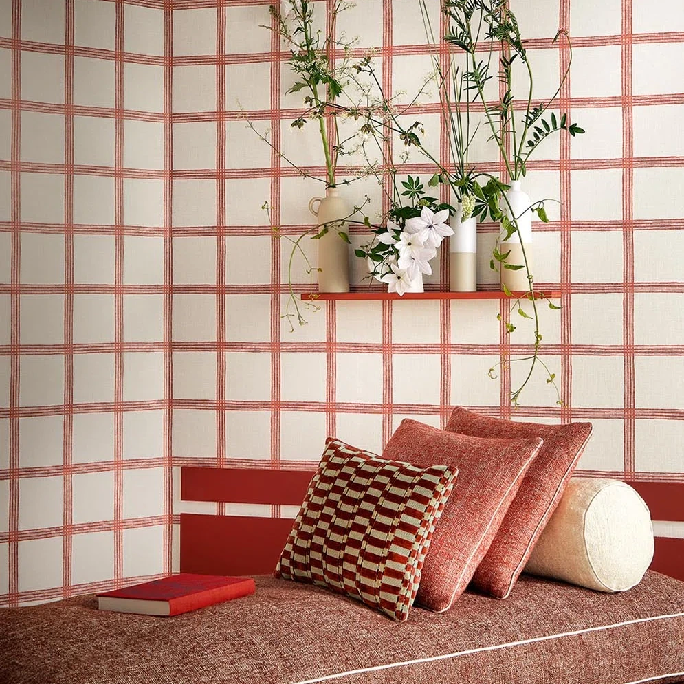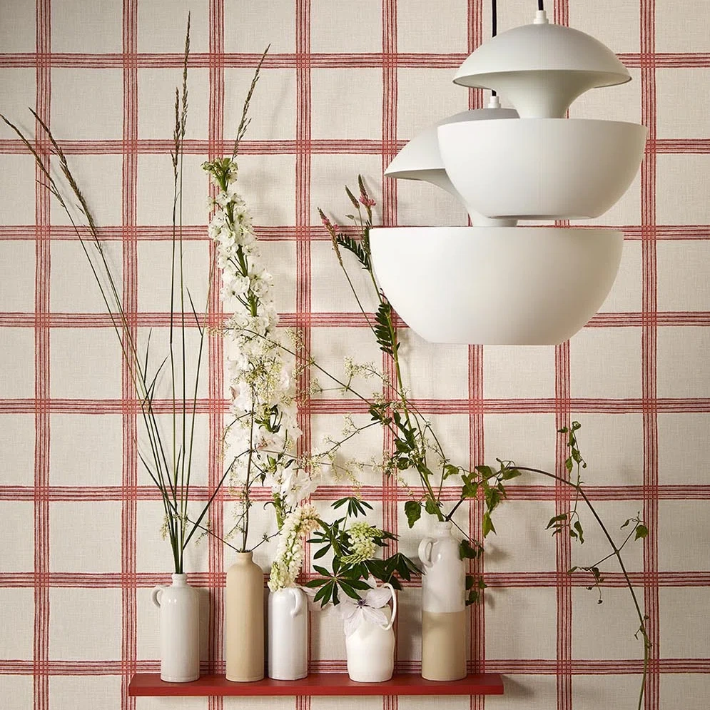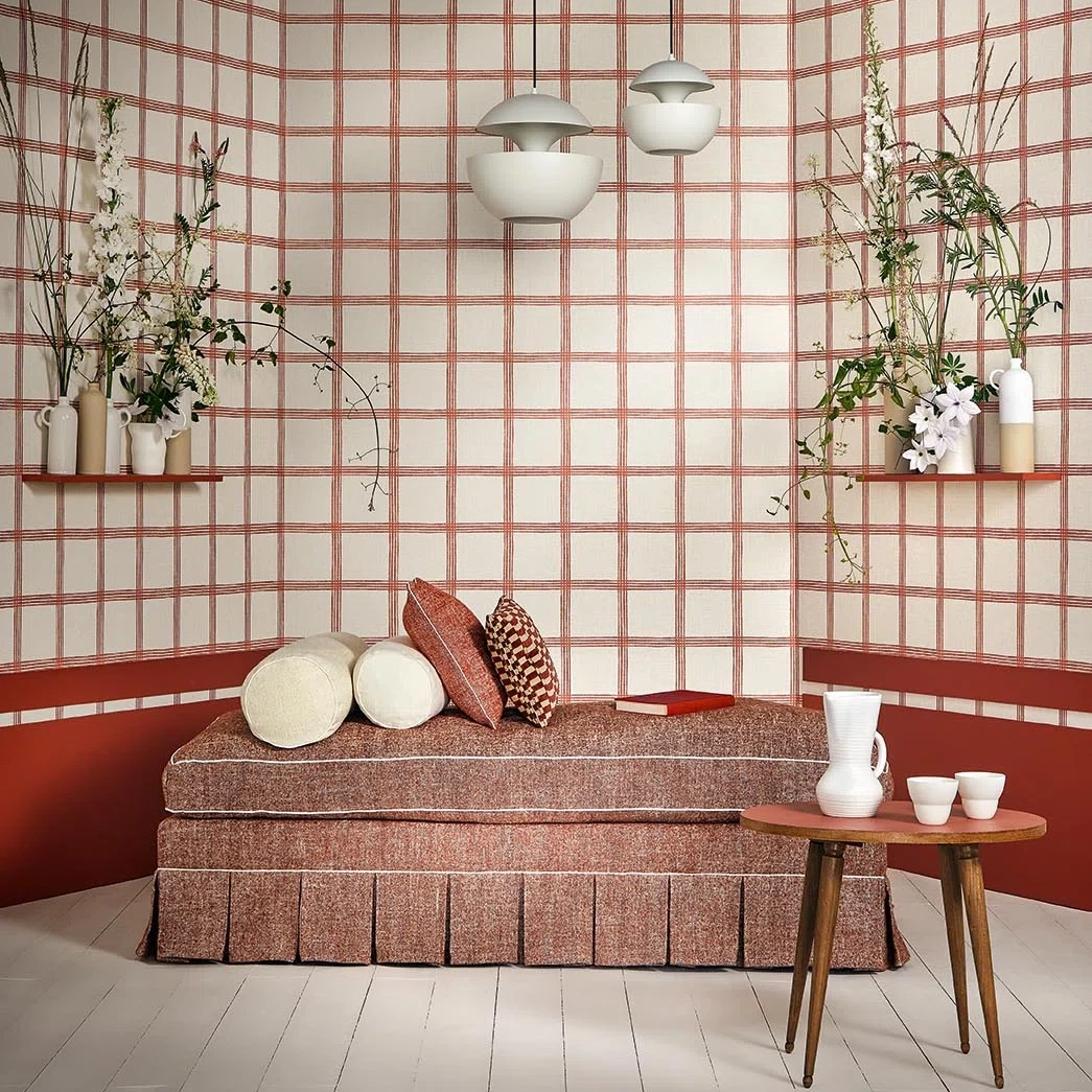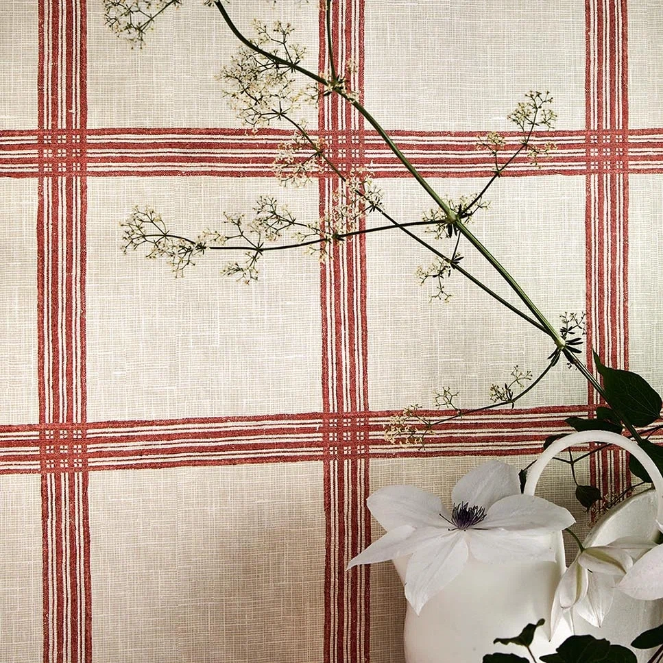 Borrowing its name from the Swedish town between two lakes, this design features traditional checks on a linen-like background.