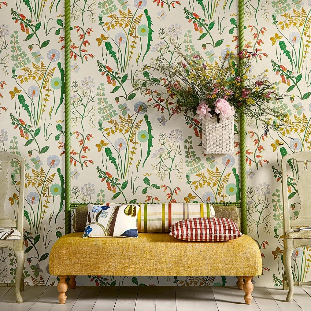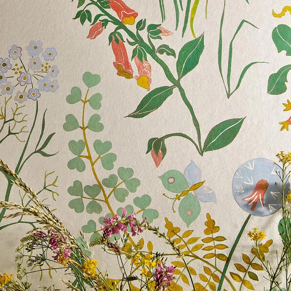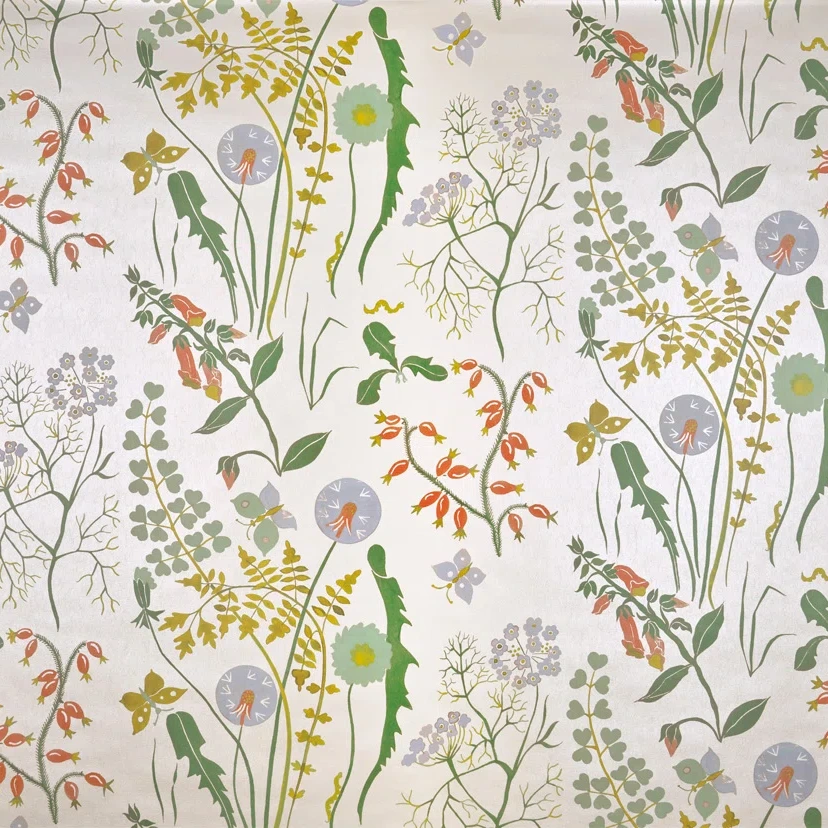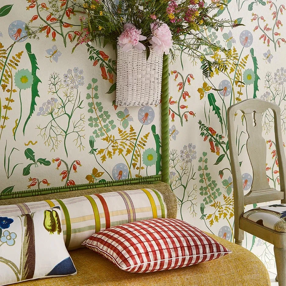 Pretty country drawing from the archives of the Maison Pierre Frey. Very fresh, it’s reminiscent of colorful Scandinavian botanical drawings.