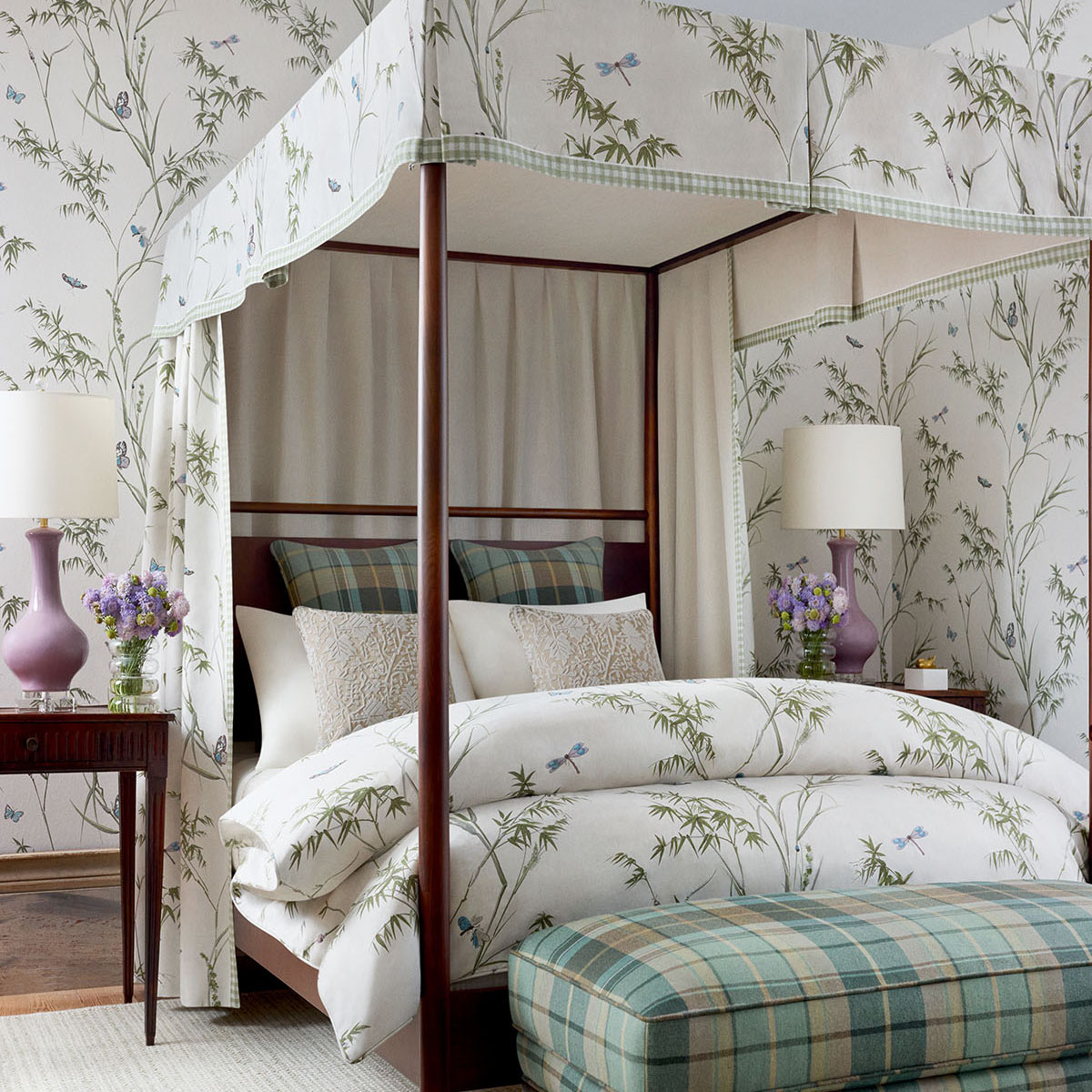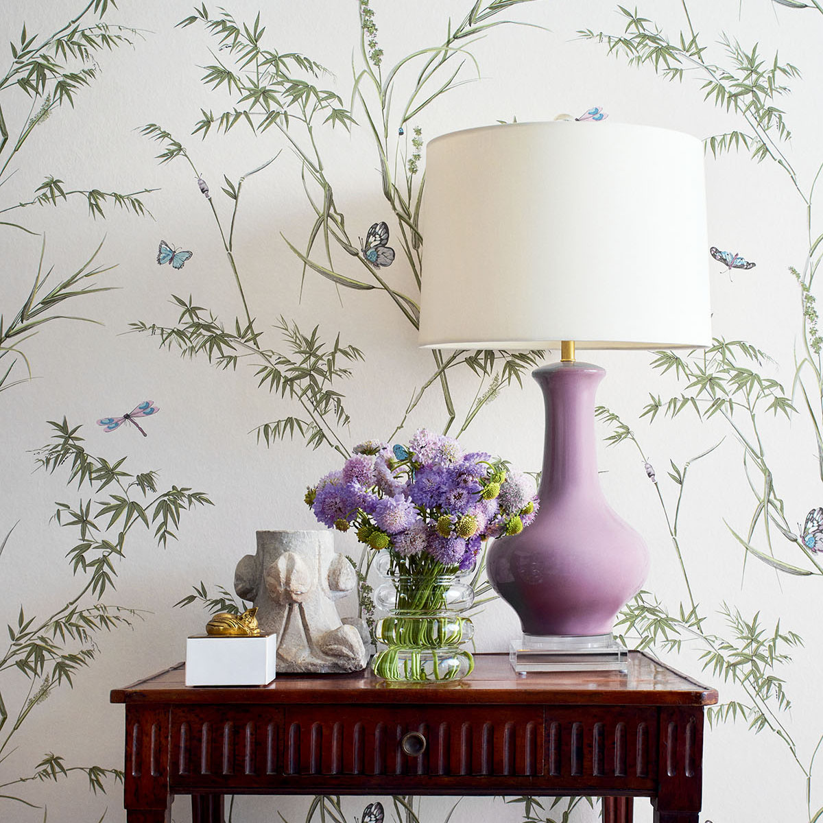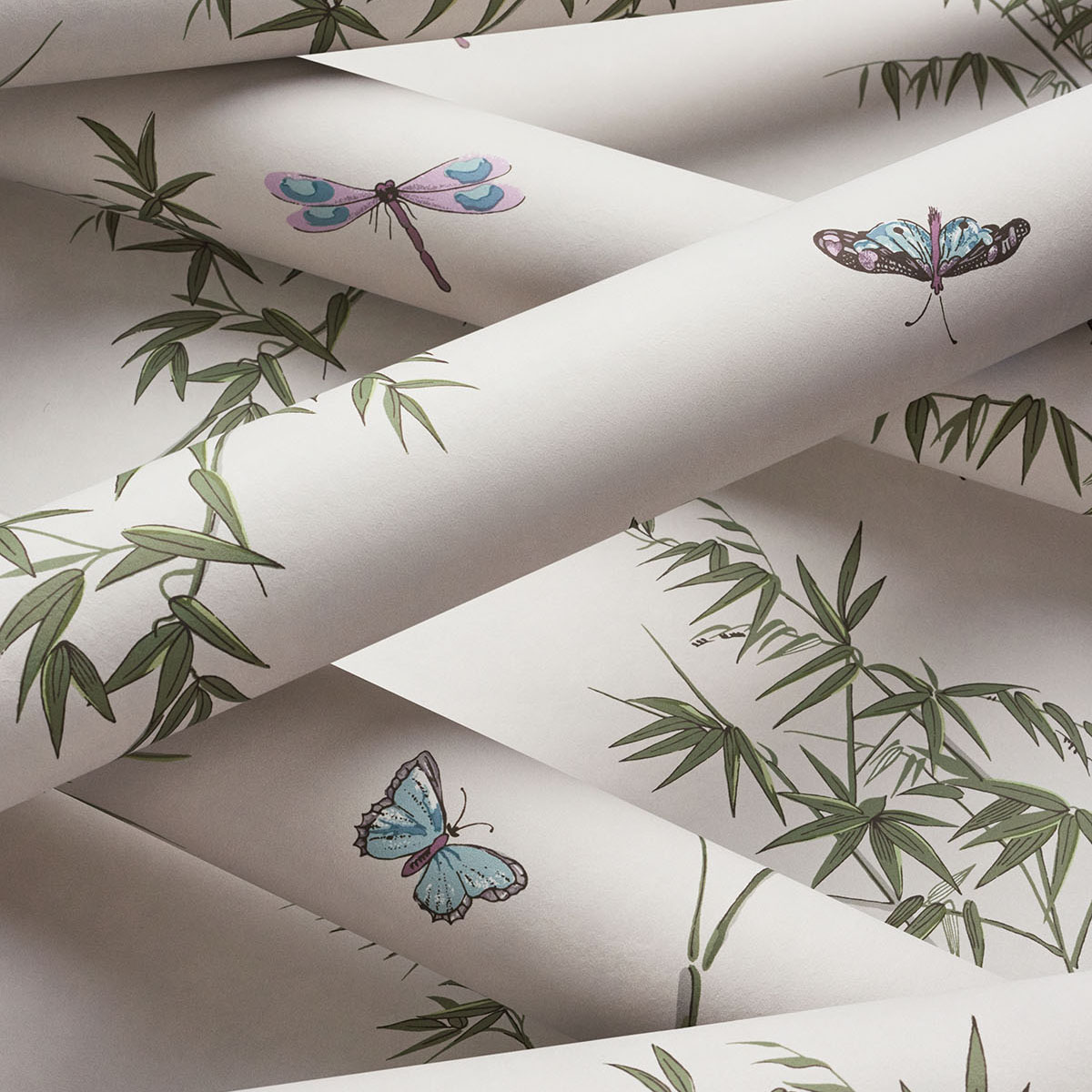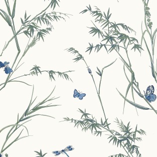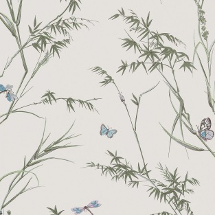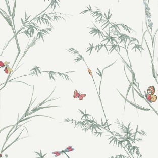 An open and elegant design, Virginia features an airy meadow scene of wild grasses, dragonflies and butterflies. Small touches of color are subtly incorporated in the insects. The small-scale design, offered in five colorways, makes it an easy and universal option as a wallcovering or fabric.