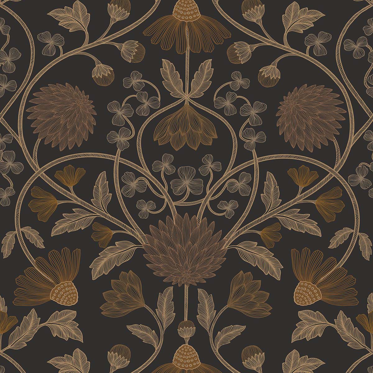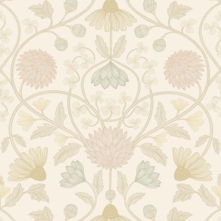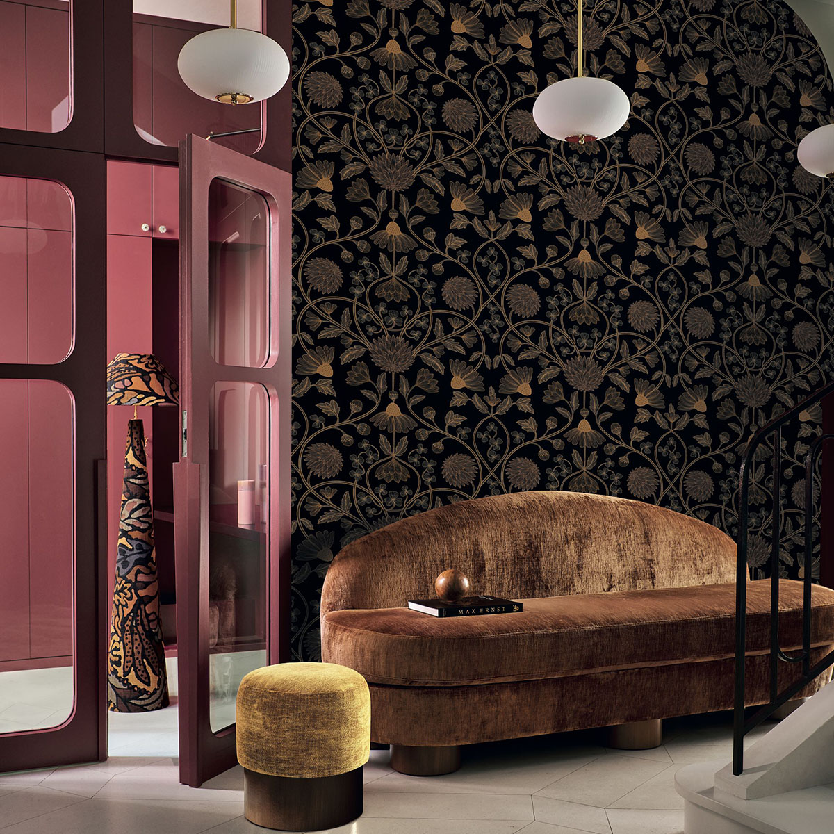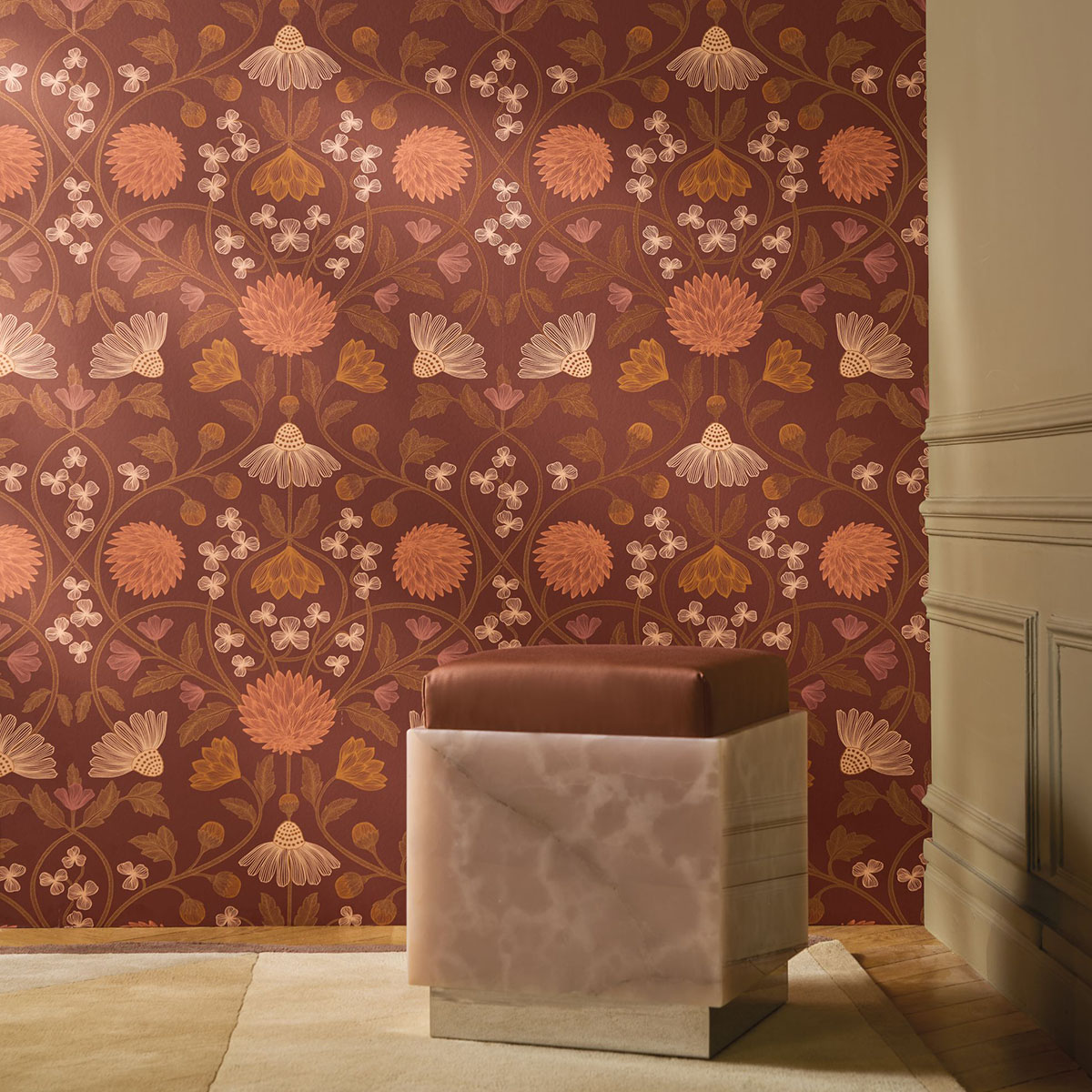 Hippolyte pays tribute to François-Hippolyte Destailleur, the architect of the Jouffroy passageway, a jewel of Parisian refinement. The design features delicate, airy decoration, with intricate flowers woven with the finesse of 19th century interiors. A subtle iridescent touch illuminates the whole, adding shine and depth, like the light gliding over the glass roofs of a covered passageway.