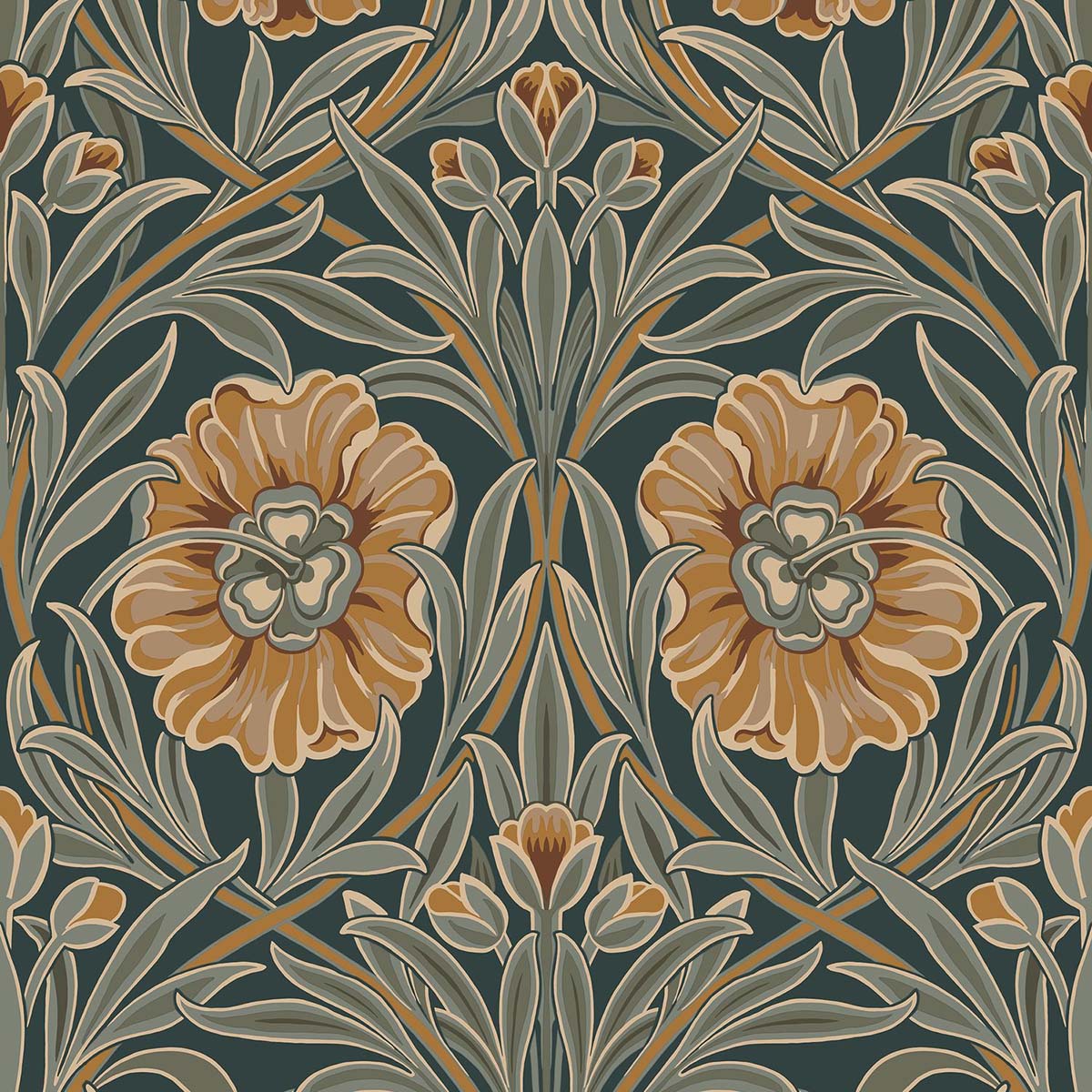 Isadora features an ornamental design of large, stylised carnations. The elegant petals create an almost architectural composition. This design is part of Isadora Duncan’s legacy, whose dance combined freedom and structure: a natural fluidity sculpted in movement. Somewhere between floral and geometric, ISADORA has a commanding presence, at once decorative and poetic. A subtle metallic touch accentuates the design, highlighting its depth and adding exquisite shine.