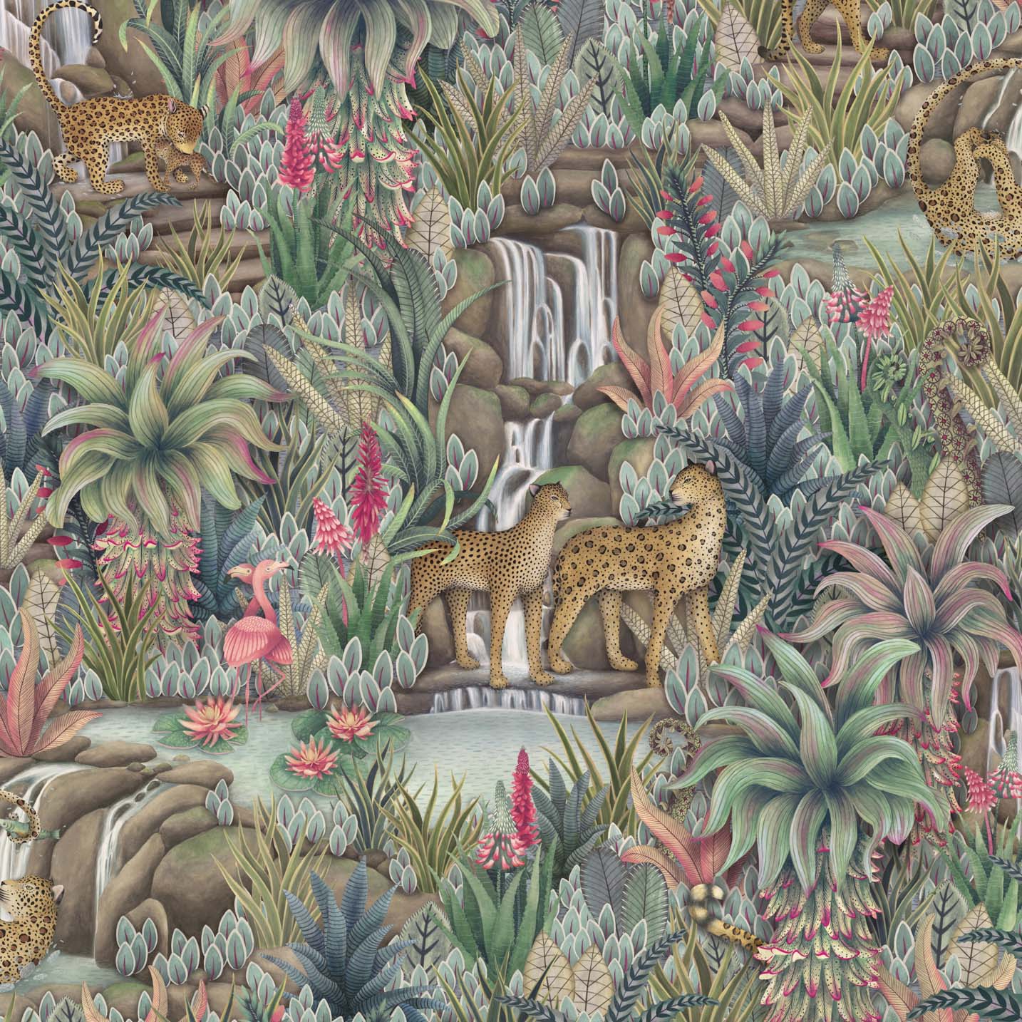This lush display contains numerous animals, including big cats, flamingos, and fish, with more unfolding the further you look.