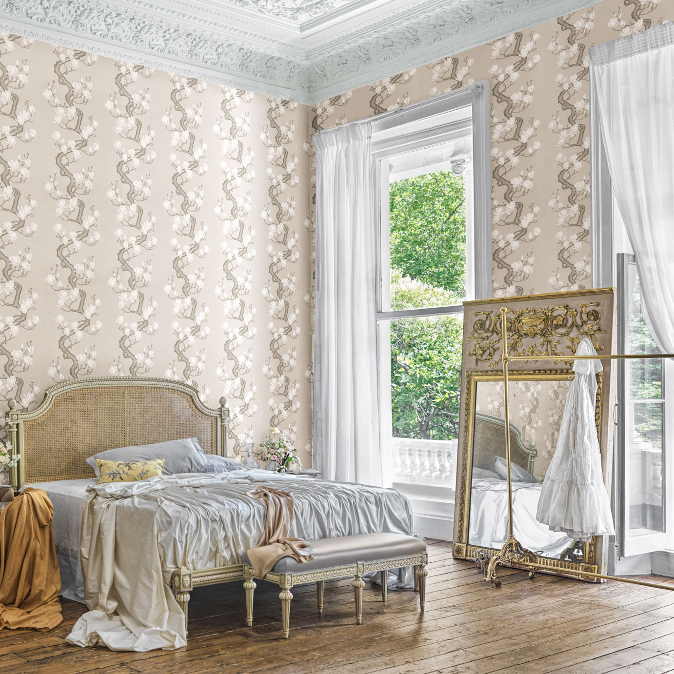 Magnolia Tree has been adapted from an archive piece with Cole & Son’s artists repainting all flowers by hand. With magnolias cultivated in China for centuries, the design is representative of the Orientalist design movement popular during the Victorian period.