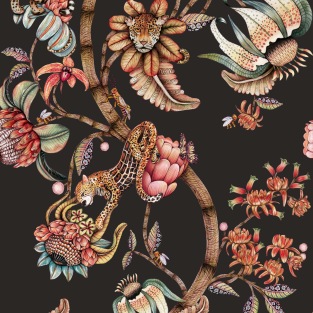 The whimsical and slightly surreal Protea Panthera is an ode to the beauty of Ardmore’s ceramics. Proudly centring around South Africa’s national flower, the protea, big cats dance along its central vine and a pair of striking green eyes look out from one prominent bloom. Surrounded by intricately embellished flowers, leaves and bugs, Protea Panthera’s grand scale captures the wild beauty of South Africa.