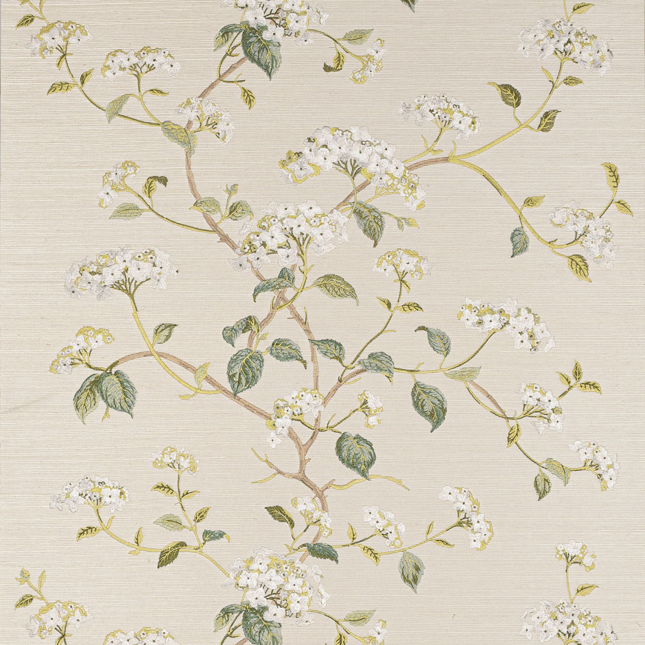 Expertly expressing the beauty and artisan nature of Colefax and Fowler embroideries on a luxurious sisal wallcovering. Blooming hydrangeas—an iconic feature of English country gardens—are rendered in intricate, delicate stitchwork. The interplay between the refined embroidery and the dry, textured surface of the sisal creates a wallcovering of remarkable quality and artistry.