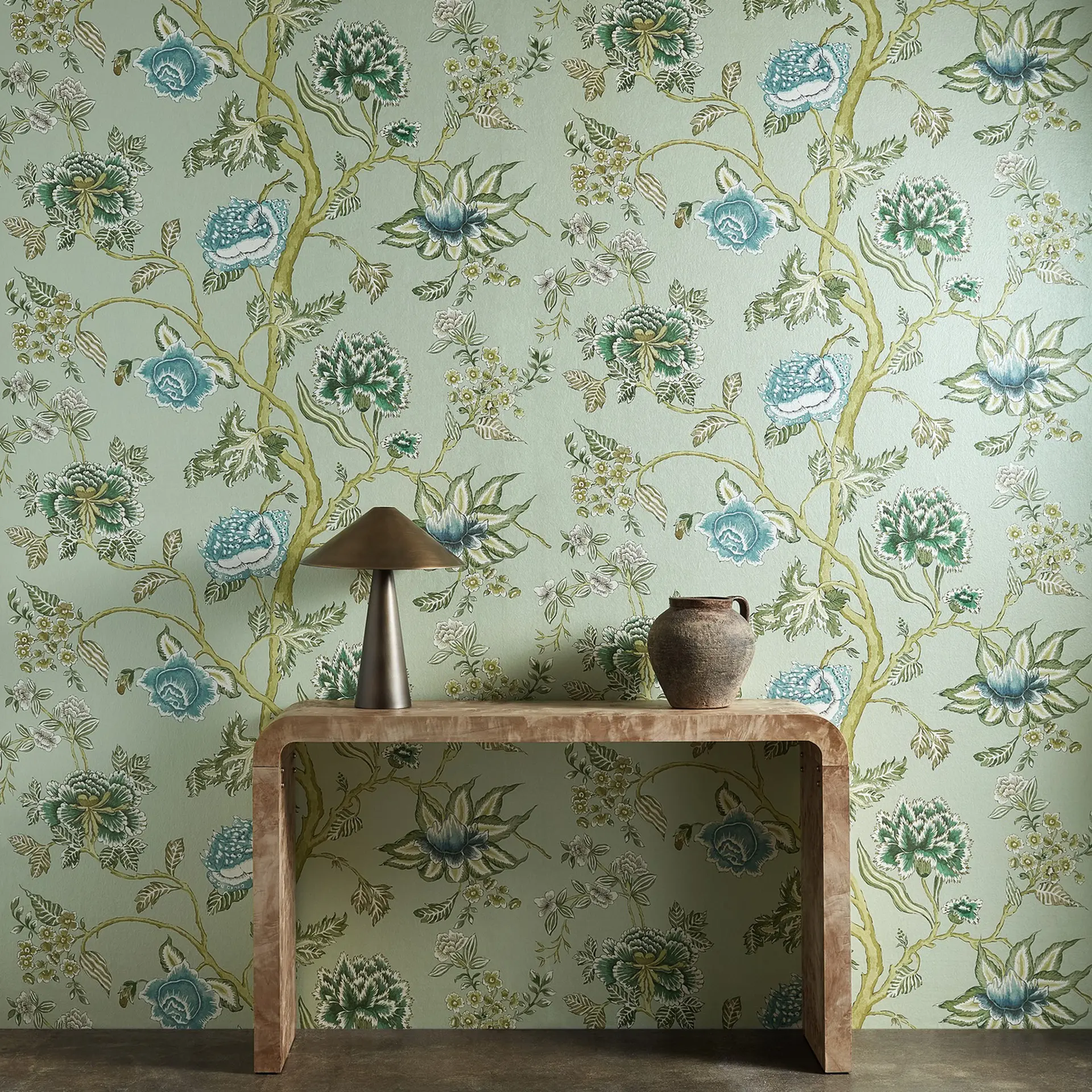 A beautiful chintz, Indienne, has been repainted in the Harlequin studio to give a contemporary feel. Elegant spacing and scale make way for five fresh yet subtle colourways. A mica ground gives a pearlescent finish, adding to the quality and luxury of this panel wallpaper design.