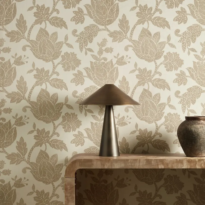 A classic, Jacobean-style embroidery, Zamora is modern and stylised in its design and colour, featuring large, leafy Jacobean heads. For the wallpaper, the studio has retained the stitch look from the embroidery in the print for a detailed finish.