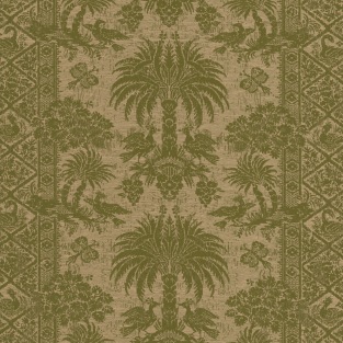 Alexandria Mural is of Venetian inspiration, a precious damask of gold and bronze tones, unveiling palms and dreamlike birds, as a persistence of The Thousand and One Nights.