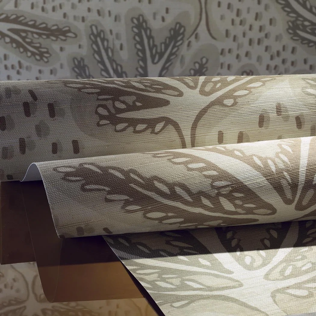 Strolling through a small lane in the province of Omiya, Japan, we enjoy visiting gardens and bonsai stands, admiring millenary trees. Printed on a hand-woven raffia.