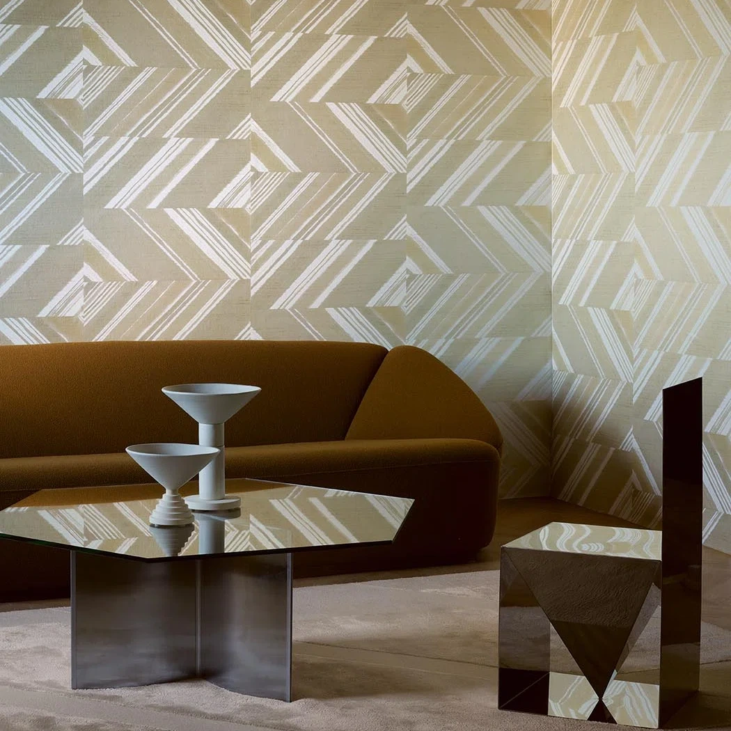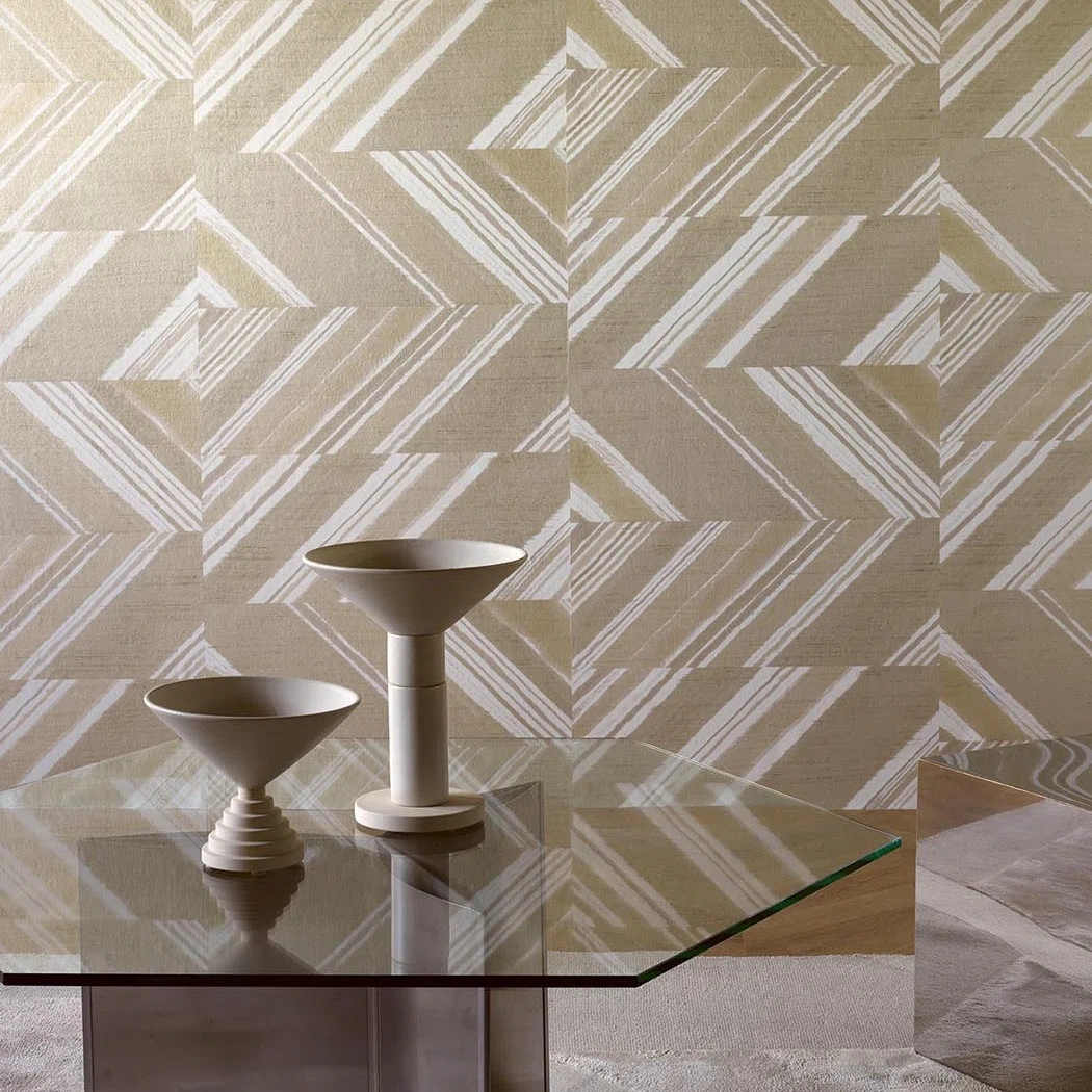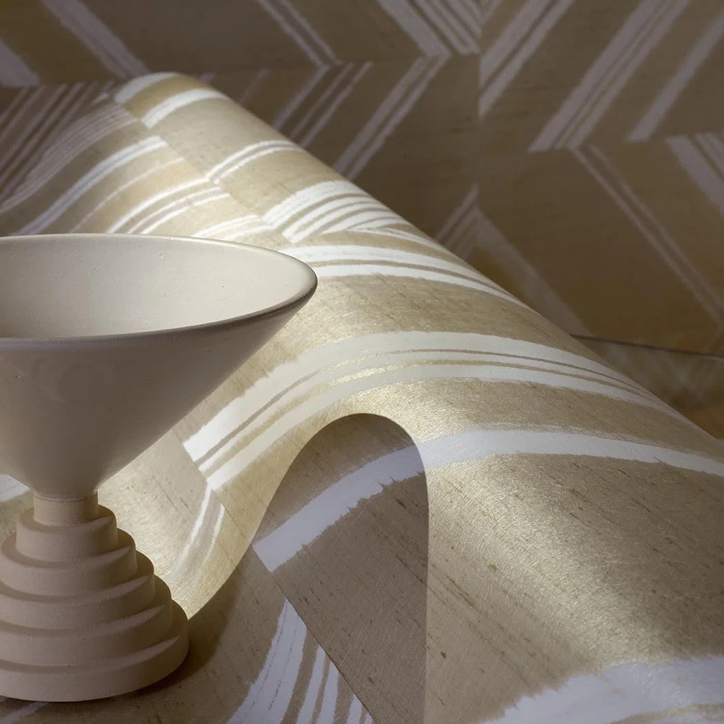 Resolutely contemporary, this refined, graphic design with champagne, beige and sand highlights invites you to take a stroll along the beaches of the Côte d’Opale. The print on a pearlescent, textured background creates stunning plays of light.