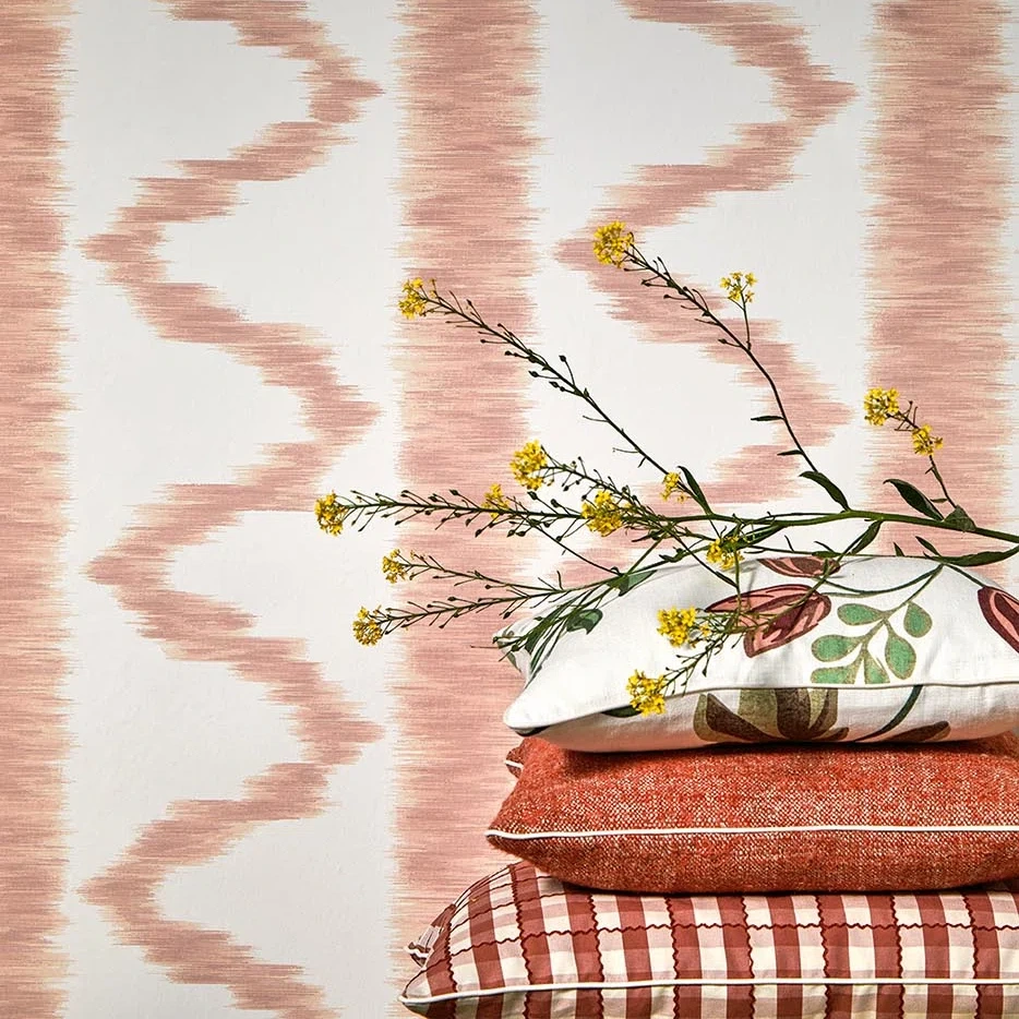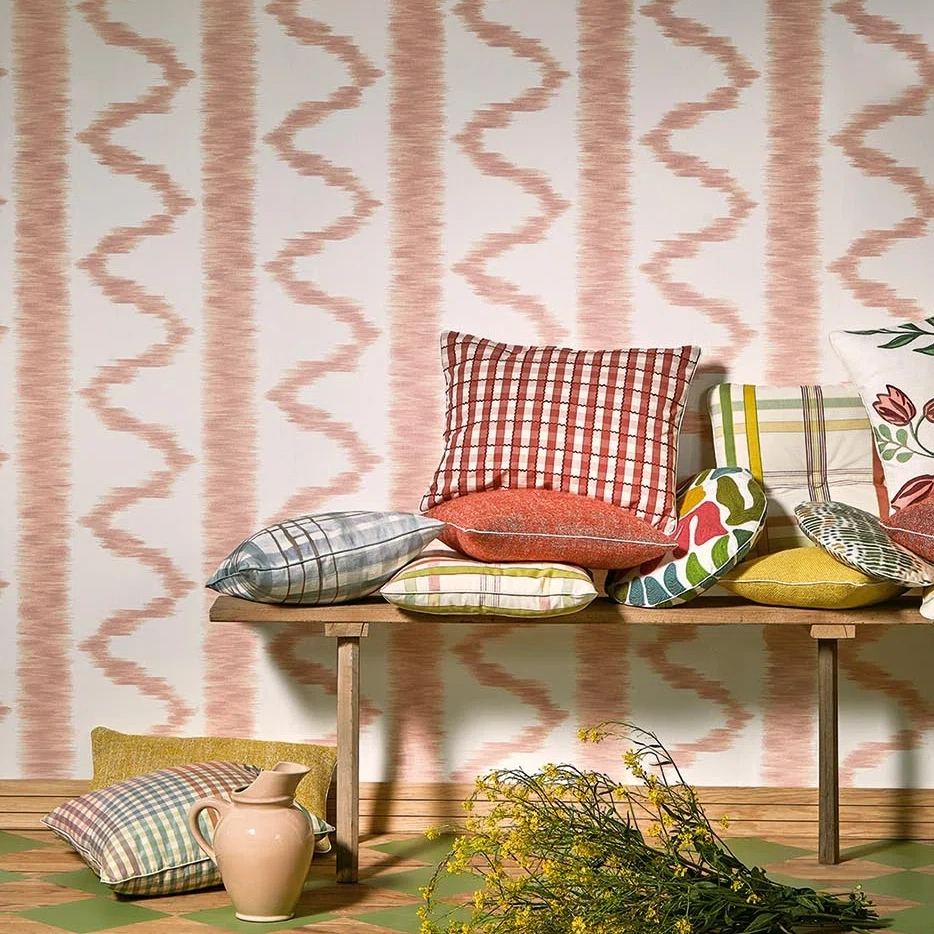 Borrowing its name from the Swedish town between two lakes, this design features traditional checks on a linen-like background.