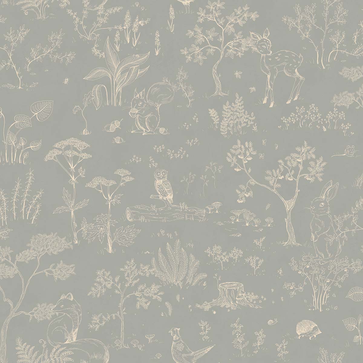 Hollie wallpaper invites you into a whimsical world, where charming forest creatures frolic amidst delicate botanical illustrations. With a soothing pistachio backdrop, this design brims with playful creativity and encourages imagination. Ideal for nurseries or any room in need of a touch of magic, the fine details and soft hues create a serene and inviting atmosphere. Designed by Sara Bergqvist
